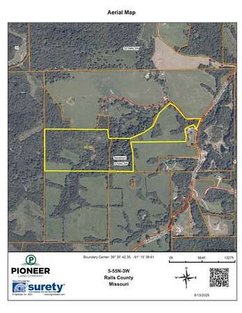 Located in Ralls County, Missouri, this 47+/-acre tract is a true hunter's paradise with a blend of features that make it ideal for recreation, wildlife habitat, and future development. The property offers excellent hunting opportunities with abundant deer, turkey, and other game, supported by diverse terrain and native cover. Several food plot areas are ready to plant, giving you a jump on the upcoming seasons ahead. This farm is just South of a large tillable farm. There is very little tillbale in the area so it is sure to draw in those big bucks! A well-developed trail system winds throughout the land, making it easy to navigate by ATV, tractor, or on foot. From the highest points, enjoy stunning panoramic views of the surrounding countryside - a perfect backdrop for a cabin or private getaway. Utilities are available with electric and water access at the road, positioning the tract for immediate use or long-term build potential. With its mix of natural beauty, utility access, and proven wildlife habitat, this Ralls County gem won't last long. Call to schedule a showing or learn more. - Excellent hunting and wildlife habitat - Multiple food plot areas - Well-maintained trail system (by ATV, tractor, or foot) - Expansive panoramic views - Electric and water access at the road - County road frontage for easy access - St. Louis, MO - 100 miles (about 1 hour 40 minutes) - Quincy, IL - 30 miles (about 35-40 minutes) - Columbia, MO - 85 miles (about 1 hour 30 minutes) * Map boundaries are approximate Directions: From New London MO take V to Rt T Turn right onto RT T Old 79/Old State Hwy 79 Continue to follow Old State Hwy 79 4.5 mi turn left onto Centenary Rd Destination will be on the left. From Hannibal Take Hwy 79 to a right on Centenary Rd property will be on the right. Watch for the yellow Pioneer Land Co sign. Showing Instructions: Call Agent Clark Ralls 47 Land Disclosure Survey Description