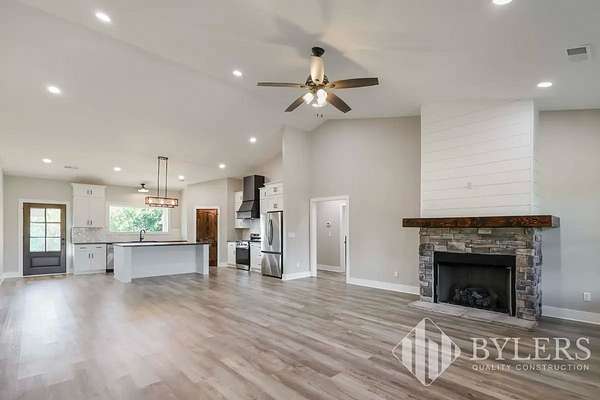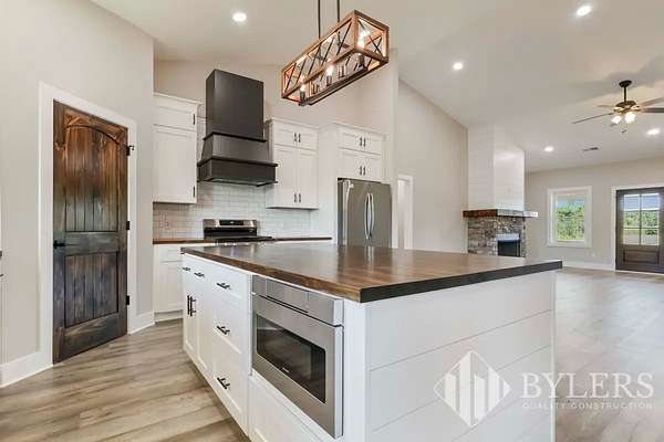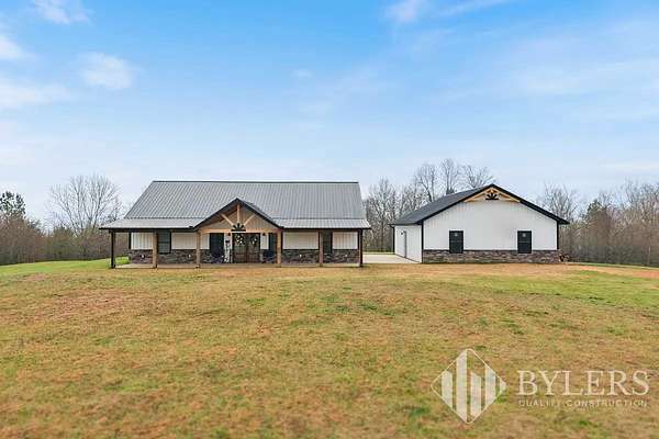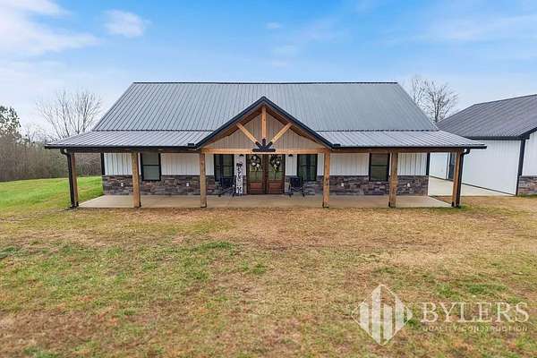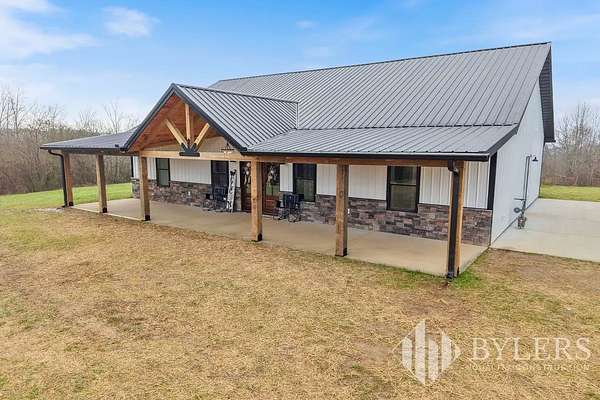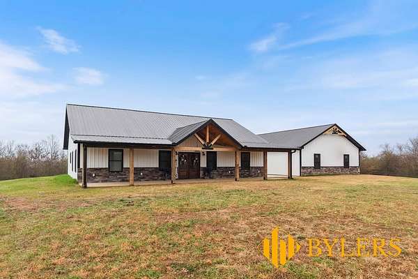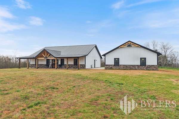Scenic & Secluded Sanctuary overlooking Centerville! Welcome Home to this beautifully built 2,000 sq ft Farmhouse style 3bdrm/2bath BARNDO on 45.23 Acres w/Detached Garage. This home blends rustic charm with laid-back country living. Perched high above the scenic Duck River and overlooking the timeless Town of Centerville, TN. This tract offers Plenty of Open Field for Farming or Furbabies, yet surrounded by Heavily Wooded Rolling Terrain. Imagine winding past the pond, and down the driveway to your Perfect Getaway called “HOME”! Step into the open great room with vaulted ceilings and a stunning shiplap and stone fireplace wrapped in a heavy beam mantle. The kitchen is straight out of a farmhouse dream with shaker-style white cabinetry, butcher block countertops, subway tile backsplash, Stainless Steel Appliances, a bold black built-in range hood, and a shiplap-accented island. A walk-in pantry with a stained pine door adds warmth and character. The spacious primary suite offers a walk-in closet and a beautifully tiled shower with subway tile walls and glass door. Granite countertops, shaker cabinetry, and durable LVP flooring throughout the home keep things both stylish and practical. Outside is where this one really shines…Enjoy a 500 sq ft covered front porch with tongue-and-groove ceiling, gorgeous stone accents, a spacious covered back porch, and a wide-open concrete patio breezeway connecting to the 1,200 sq ft detached 2-car garage. This property allows you room to spread out and enjoy true country living.