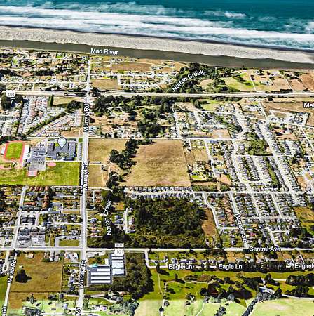 5.75 Acres zoned Community Commerical, C-2, in a great high traffic/high visibility location close to town center of McKinleyville, 101, airport. ''Stores, agencies and services of a light commercial character, conducted entirely within an enclosed building, such as antique shops, art galleries, retail bakeries, banks, barber shops, beauty salons, book stores, clothing and apparel stores, coin-operated dry cleaning and laundries, dry cleaning and laundry agencies, drug stores, florists, food markets, furniture stores, hardware and appliance stores, radio and television sales and services, restaurants and licensed premises appurtenant thereto, automobile service stations, studios, tailor shops, enclosed theaters, variety stores, and mortuaries. (From Section INL#314-34(a)(3))''