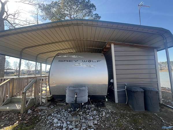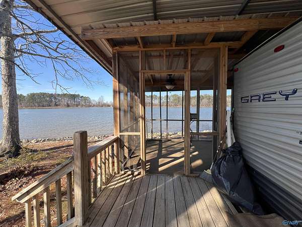 Bring the bait and the BBQ the sunsets are waiting! These two deeded waterfront recreational lots on the peninsula of Weiss Lake in Centre, located in the beautiful Three Mile Resort area! Approx. 0.22 acres with water on both sides. Property includes an RV with screened, partially wraparound porch w/ outdoor shower, swing to enjoy the amazing view, and fire pit for family and friends to gather. 2013 Forest River Cherokee Camper sleeps 8-10. Two piers: small pier on slough side and 75-ft +/-pier on main point. Each lot has its own water source plus holding tank on site. Ideal for fishing, boating, & your favorite water sports.