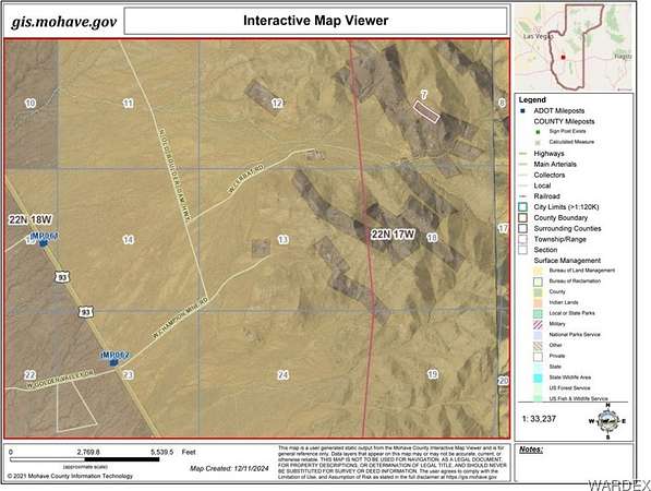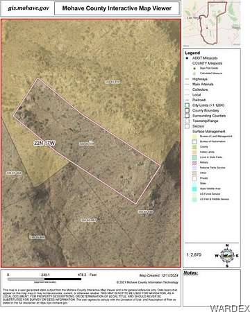 The Vanderbilt Mine is for sale! This 6.87 acre mining claim was actively mined for gold until WWII began and PRODUCED GOLD! The parcel conveys with the mineral rights and mining claim. Borders BLM land on 3 sides. Current access is unknown, sellers have not been there and Realtor was unable to get to the property. Less than a 1/2 mile, very steep, hike from Cerbat Road across BLM land to get to northeast property line. If you go adventuring, be prepared with food, water, warm clothes, and satellite communications as cell signal drops out in the valley areas, and be aware you are traveling in an open-pit mining area. Do not approach any mine shafts edges closer than 20 yards. GPS Coordinates: 35.307857, -114.138018 brings you to far NE end.