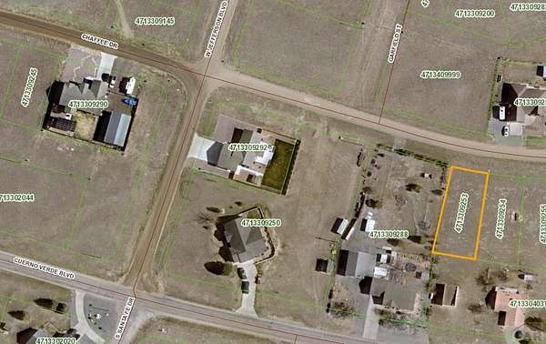 Est $163/moVacant lot in beautiful Colorado City, easily accessible right off of Cuerno Verde Blvd. and ready for you to build your dream home! This lot is also just a couple minutes down the road from Lake Beckwith or a few minute walk to Hollydot Golf Course. Plus it's only a 25 minute drive to Pueblo or 25 minutes up to San Isabel. This is the ideal location!! Water AND Sewer are available in the street (*the tap fee has NOT been paid). Colorado Natural Gas and San Isabel Electric are the other available utilities (on Chafee Drive).