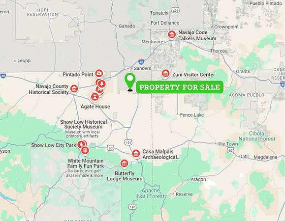 Located 30 minutes from Petrified Forest National Park and 89 miles from Silver Lake Canyon, the property provides access to horseback riding, backpacking, camping, and scenic hiking opportunities. The remote setting offers genuine seclusion while maintaining reasonable access to Arizona's natural attractions.