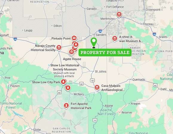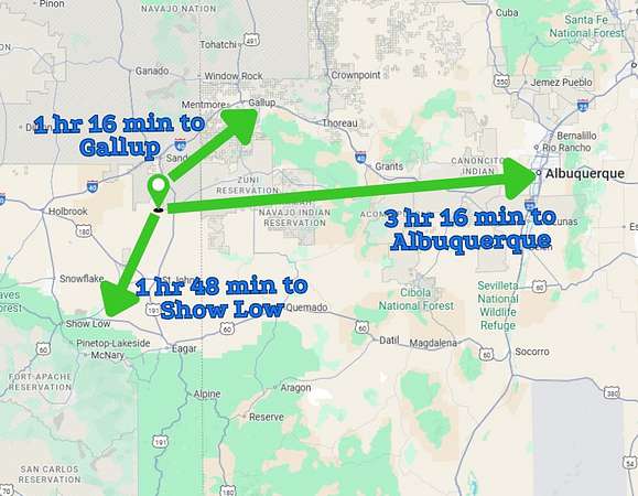 Located approximately 1 hour from Petrified Forest National Park and Painted Desert Inn, 35 minutes from gas and services in Sanders, and 1 hour 15 minutes from Gallup, New Mexico for expanded shopping and medical facilities. Apache County's open land, limited development pressure, and flexible rural living options appeal to those seeking off-grid Southwest living with strong solar potential and year-round outdoor recreation access.