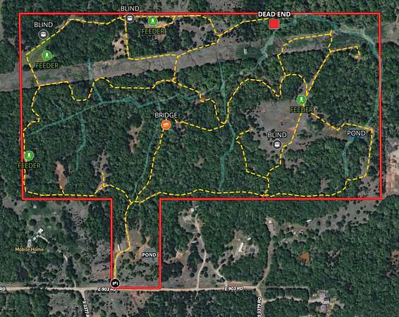 If you've been searching for a true Oklahoma recreational paradise, this 86 +/- acre tract in Lincoln County delivers in every way. The property is loaded with whitetail hunting potential, featuring several carefully placed hunting destinations with easy access trails to each setup depending on wind direction. The layout has been designed for efficient, low impact access, helping you move quietly and hunt smart. One of the standout features is the incredible trail system. With approximately 4 miles of dozed and groomed trails, you'll enjoy some of the most fun and scenic UTV riding you'll find anywhere in the state. The trails weave up, down, and wind across rolling terrain, through scenic valleys and wooded ravines, looping the perimeter and guiding you deep into the heart of the property. Once you're on the trails, it truly doesn't even feel like Oklahoma. The land offers diverse terrain with a mix of elevation changes, timber, and natural cover. Two ponds and miles of wet weather creeks provide excellent water sources for wildlife and added beauty/functionality. At the front of the property near the included shipping container is a great build location with electric on site, making it ideal for a cabin, barndominium, or weekend getaway. Conveniently located only 40 miles from Downtown Oklahoma City and approximately 1 hour and 15 minutes from Tulsa, this property offers a rare combination of seclusion, recreation, and accessibility. Whether you're looking for a serious Hunting Property, a High Energy UTV retreat, or a future homesite with endless outdoor opportunities, this tract checks every box.