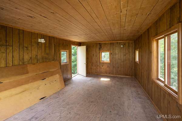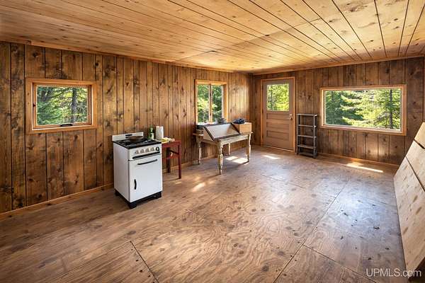 Explore your own secluded lakeside getaway! Situated on 6.5 acres with approximately 300 feet of shoreline in a serene bay on the beautiful 500-acre Chaney Lake, this extraordinary property combines space and peace. It features a cozy, insulated one-room cabin of 198 sq ft equipped with gas lighting, perfect for weekend getaways. A power pole is conveniently positioned near the cabin for straightforward electricity access. Whether you dream of serene lakeside living, planning for future development, or seeking a recreational escape, this is a rare chance to secure budget-friendly waterfront property with generous land. Located a short drive from ski resorts, shopping, and many nearby attractions, this opportunity offers limitless potential. Make this property your personal lakeside haven today! Seller has plans available for addition to one room cabin. Buyer to verify acreage, cabin dimensions, frontage and installation of electric service. Taxes estimated from SEV.