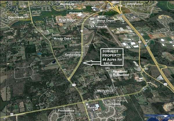 SIGNIFICANT OPPORTUNITY FOR PROPERTY DEVELOPMENT 44 ACRES ON CHANTILLY PARKWAY! Located in the fastest growing community in the state of Alabama, Pike Road, Al. Potential development includes commercial and residential; mixed use, or residential with smart code plan available. Or an individual may choose to build own dream home or family homes tucked away and surrounded by plenty of acreage. The best of all worlds, Hwy 110 Chantilly Pkwy is positioned for easy access to I-85 via Mitylene Exit, Montgomery, Vaughn Rd, and Town of Pike Road. A great site for personal use, or a work and play community, or investment to exceed your imagination in development.