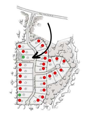 South on Moore's Mill Road; turn right on Society Hill Road; turn left onto Pierce Chapel Road. In half a mile, turn right into Chapel Heights. Lot 3 is on the right near the front of the neighborhood.
