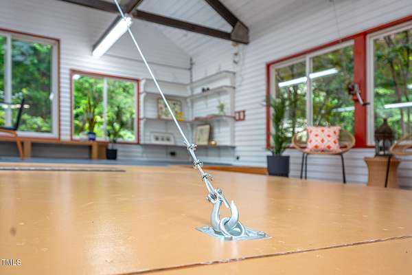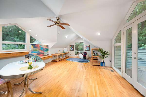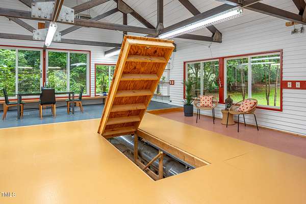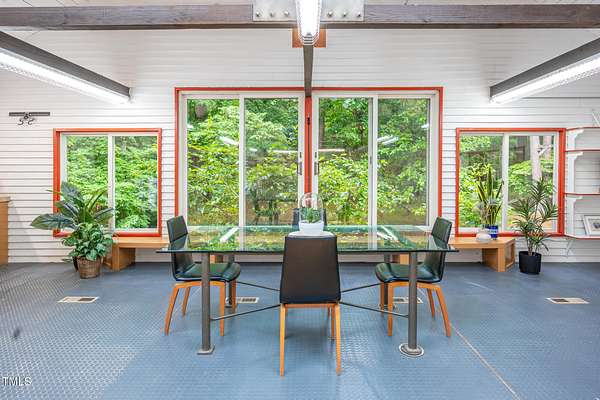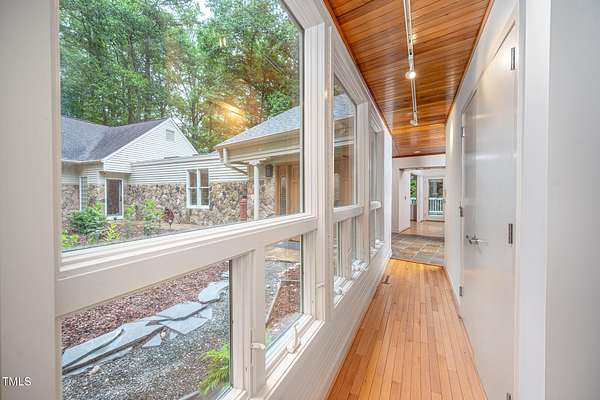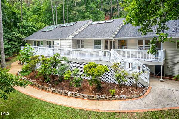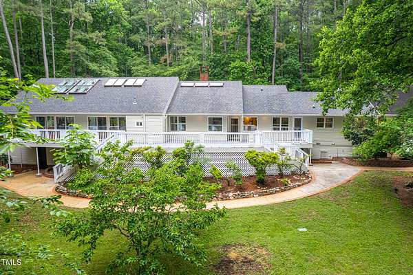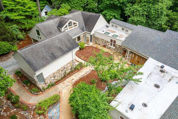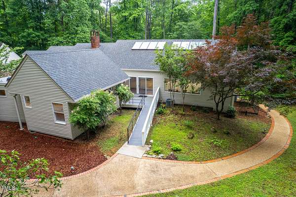 Tucked in the woods on approx 4 ACRES, come DISCOVER the RARE & UNIQUE blend of your new stone-accented CONTEMPORARY RETREAT *An extraordinary home that welcomes all & was designed w/ an acute awareness of its relationship to the environment & surrounding elements! *Nestled among a multitude of exquisite trees and greenery with a path to a winding creek at the rear of the property - listen to the gentle melodies of flowing water by your own peaceful sanctuary *Mostly 1-LEVEL, this home is a showcase for convenient, relaxed living, all while enjoying nature & nourishing family or friends *Drive down the meandering tree lined driveway to arrive at your private oasis, just 10 minutes from downtown Chapel Hill/Carrboro *Spacious inside & out with WALLS of WINDOWS allowing ample natural light, while creating panoramic views of Mother Nature's best! *Artfully designed with a soothing flow of sweeping curves and fluid lines *The former indoor swimming pool has been thoughtfully reimagined into a spacious, flexible area perfect for a solarium / studio / art / dance / yoga / office or recreation room - basically it can be a flex space for you to create what is best for you! *With existing infrastructure still in place, it can even be returned to an indoor swimming pool OR beneath the floor lies a hidden stairway leading to what could be a one-of-a-kind wine cellar in what once was the deep end :) *Any dancers or ballet in the house? Another versatile room offers an inspiring space for growing minds and moving feet *Music and/or movie fanatics? Enjoy this dedicated and thoughtfully crafted space acoustically designed to enhance sound quality where performance and relaxation meet in style *A creatively designed bonus room with private balcony above the garage awaits *Separate ''kiln'' house for all your arts & crafts can also make for a great workshop or other hobbies + another storage type house could be updated into a cool kids play house or additional storage *Whole-house generator *County taxes + Chapel Hill Schools *A truly exceptional home with room to live, create & thrive!