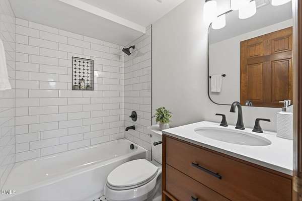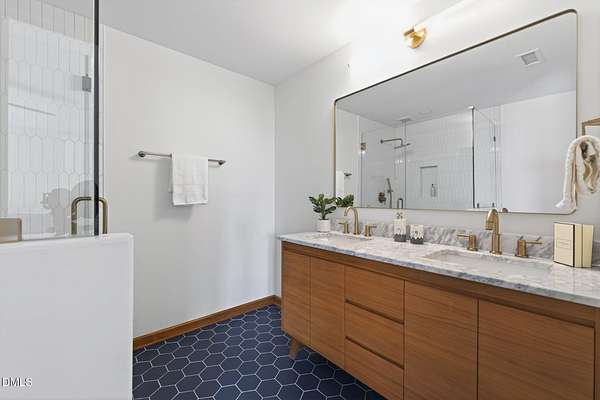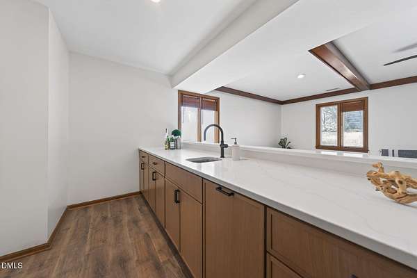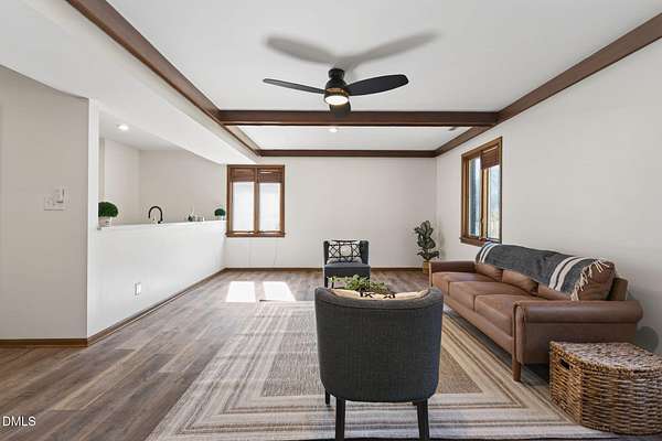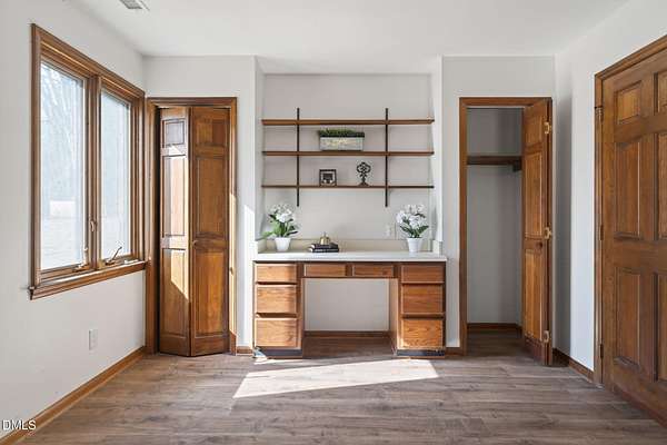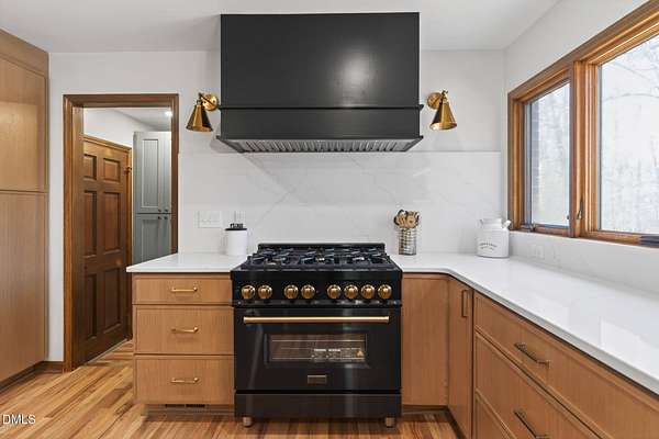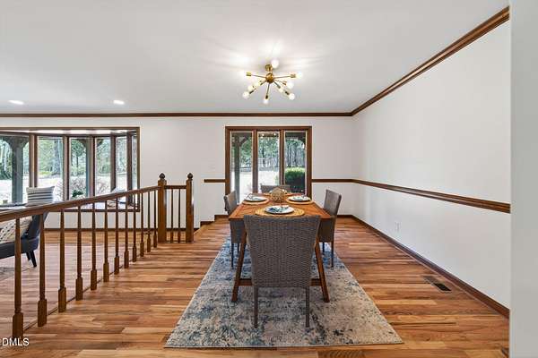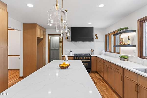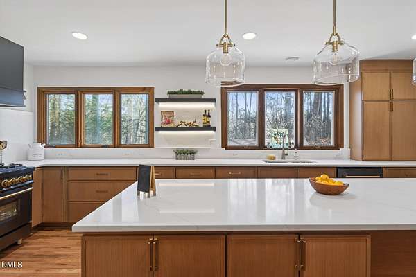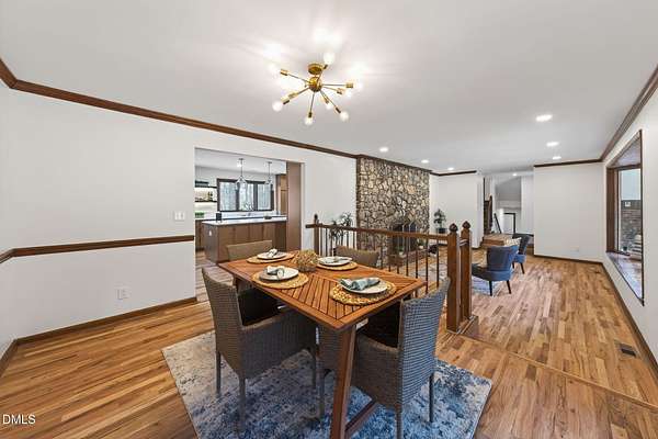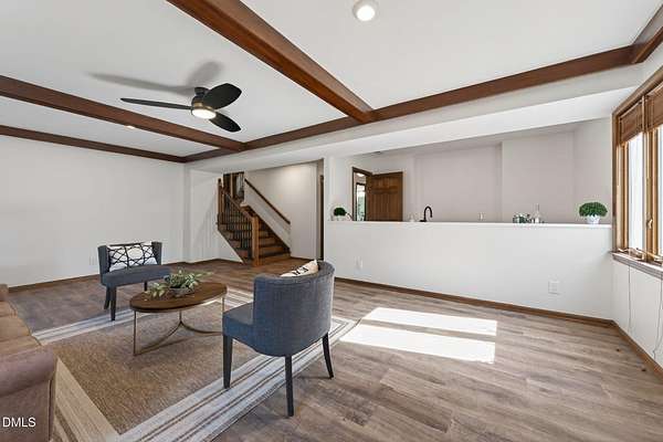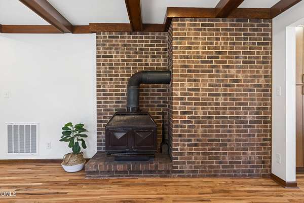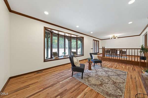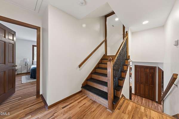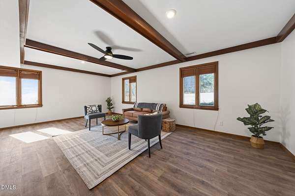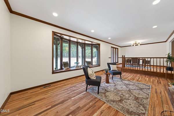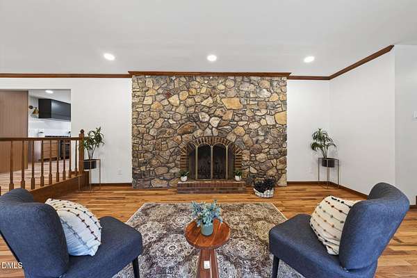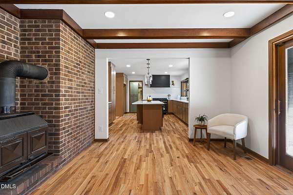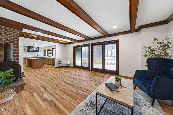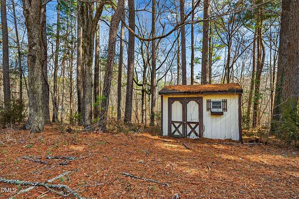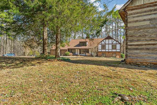 Welcome to a one of a kind Tudor retreat on 5.46 acres in Chapel Hill, where historic character meets a fully renovated, move in ready home. Thoughtfully updated from top to bottom by award winning Green Hill Contracting, this 3,959 square foot residence offers 4 bedrooms and 5 bathrooms (3 full 2 half), but lives like 5 bedrooms thanks to multiple flexible bonus and guest spaces (septic permitted for 4 bedrooms). Inside, warm hardwood floors, rich millwork, and dramatic exposed beams frame a series of inviting gathering spaces, including a stunning living room centered on a floor to ceiling stone fireplace and bay window that capture serene wooded views. An elevated dining area flows into the showpiece kitchen, where you'll find sleek quartz countertops, custom cabinetry, a large entertaining island, floating shelves with accent lighting, and a professional style range, perfect for everyday cooking or hosting a crowd. Thoughtful touches like the updated powder room, a well appointed mudroom with built ins, fireplace and wood stove make the home feel both modern and timeless. The private owner's suite is a true retreat, featuring its own balcony overlooking the property, ideal for morning coffee or unwinding at sunset, along with a beautifully updated ensuite bath and generous closet space. Additional bedrooms and baths are spacious and bright, while flexible rooms on each level can serve as an office, playroom, media room, or extra sleeping quarters to accommodate guests or multi generational living. Outdoor living is just as special, with a wide front porch, multiple doors connecting the interiors to the grounds, and expansive yard framed by mature trees that provide privacy and room to roam. At the front of the property sits a rare log cabin believed to be one of the oldest surviving structures of its kind in Orange County; the Orange County Historic Preservation Society has expressed interest in pursuing landmark status with the future owner, offering potential tax advantages should the buyer choose to designate it. This is a rare opportunity to own a beautifully updated Tudor home with rich architectural details, abundant space, and a remarkable historic outbuilding, just a short drive to all that Chapel Hill and the Triangle have to offer. AGENTS see private remarks.