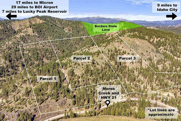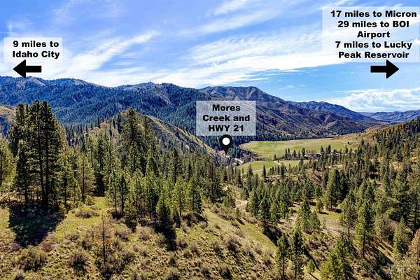 Discover your private Idaho retreat on 45+/- acres in Boise County. This exceptional property offers a premier building site with stunning 360 degrees views of mountains, timbered hillsides, and expansive skies. Enjoy abundant wildlife right out your door and the peace and privacy of wide-open space. A newly graded road ensures easy access. This parcel borders Forest Service land, providing convenient access to endless outdoor recreation. A rare opportunity to own a truly special piece of Idaho. Located just minutes from Mores Creek and near Lucky Peak for Fishing & Boat recreation, you're only 9 miles to Idaho City, 17 miles to Micron, and 29 miles to the Boise Airport. LOT LINES IN PHOTOS ARE FOR REFERENCE ONLY & ARE NOT EXACT. BTVAI. *SHOWN BY APPOINTMENT ONLY*