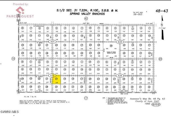 2.5 acre residential corner lot in the Spring Valley Ranchos/ Charleston View area of Tecopa. Situated very close the California & Nevada border. Wide open spaces with a few homes in the area. Seller financing is available. APN 048-432-20.