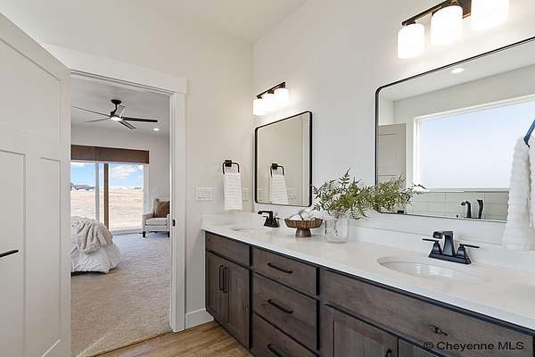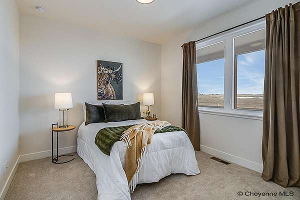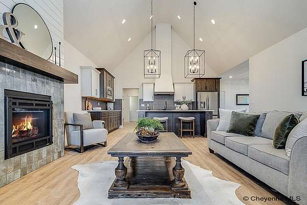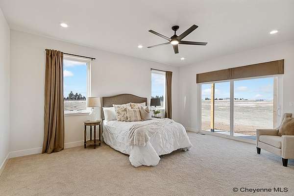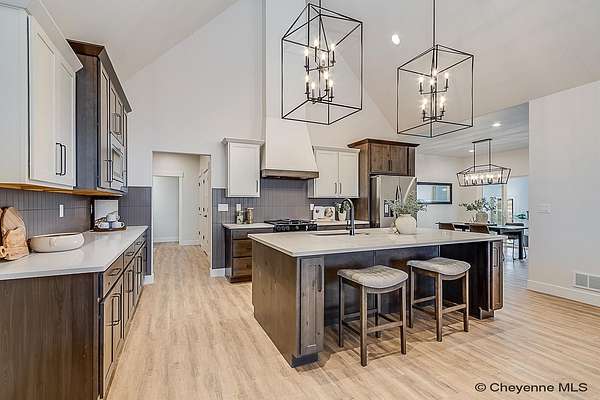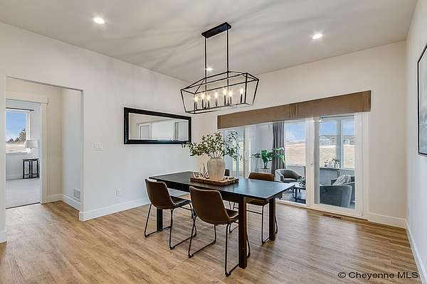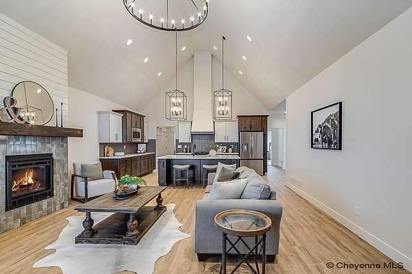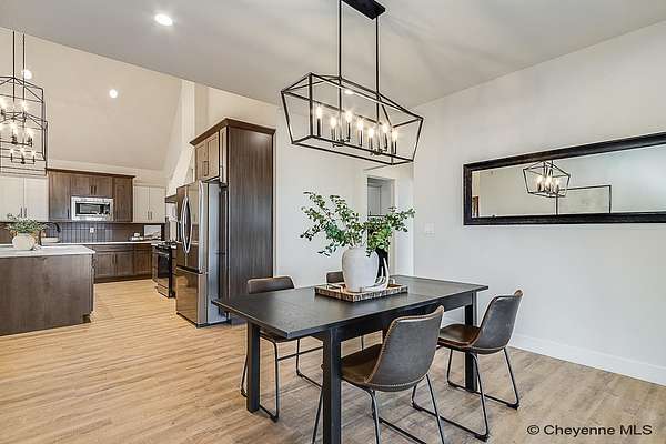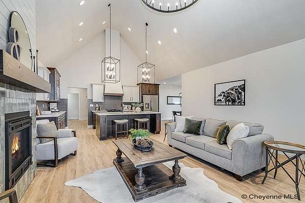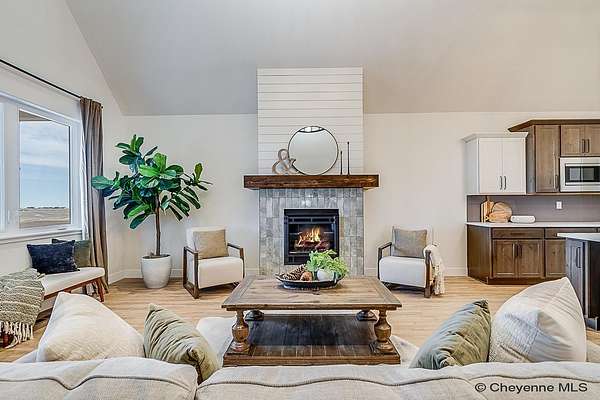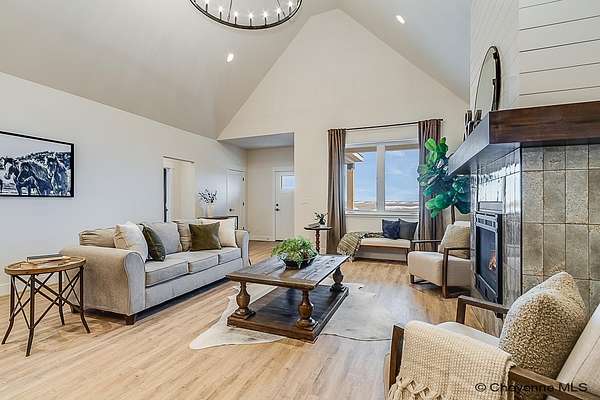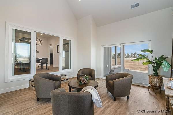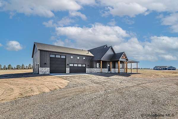 Welcome to close-in rural living in The Reserve at Horse Creek, one of Cheyenne’s most desirable acreage communities. This 3-bedroom, 2.5-bath home offers 2,365 sq. ft on the main level with a layout that feels open, functional, and filled with natural light throughout the main living spaces. The kitchen flows seamlessly into the dining and living areas, making it an easy space for both everyday living and entertaining. Just off the dining area, the covered 4-season room gives you a place to enjoy the outdoors year-round, whether it’s morning coffee or winding down in the evening. The wraparound covered patio adds even more space to relax and take in the quiet Wyoming sunsets. The garage setup is a standout feature. The oversized 4+ car attached garage includes two tandem 14’ RV doors, offering plenty of room for trucks, trailers, campers, or a full workshop setup. The circular driveway makes access simple and adds to the overall curb appeal. Located in The Reserve at Horse Creek, this property offers the space and privacy buyers are looking for, without giving up convenience to Cheyenne. Acreage properties with this kind of usability, garage capacity, and setting don’t come up often. Photos are of a previous build. Buyer still has time to pick finishes!
