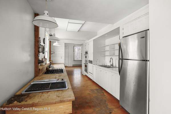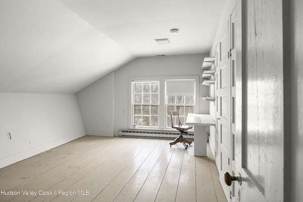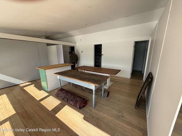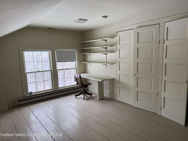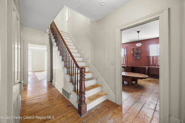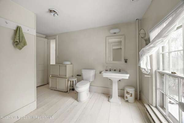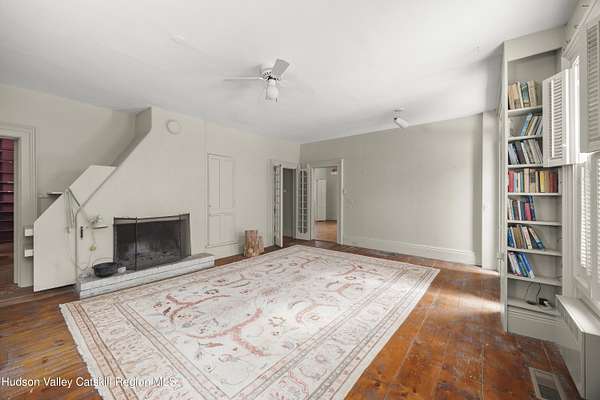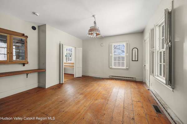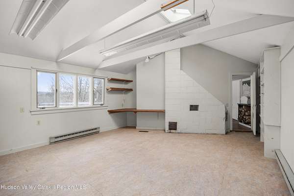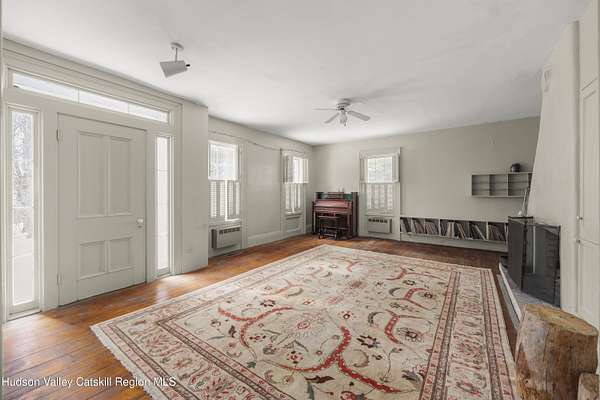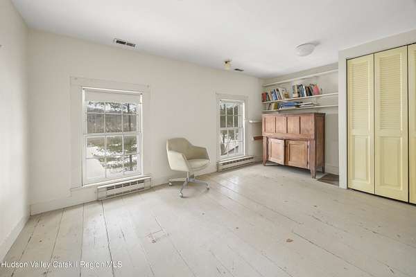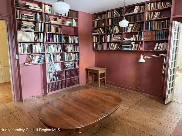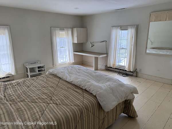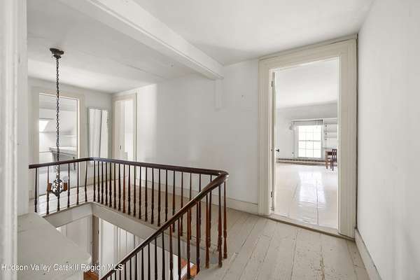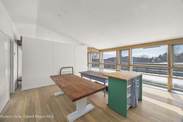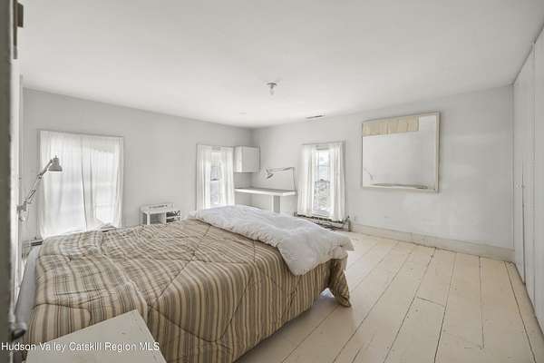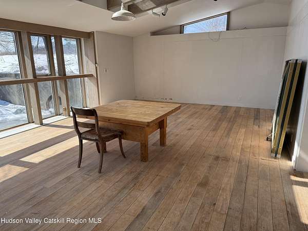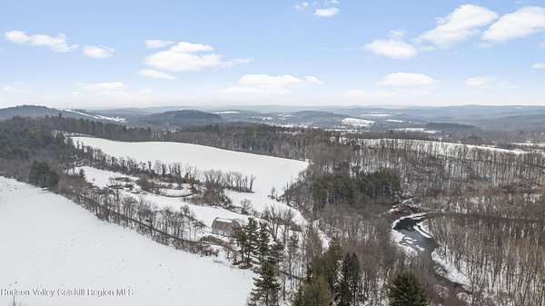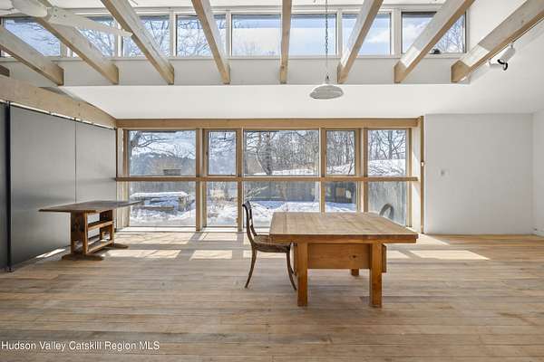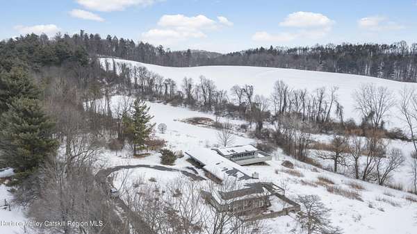 Tucked away at the end of a quiet dead-end road in the glorious countryside of Chatham, this exceptional property offers privacy, history, and sweeping natural beauty. The circa 1840's five-bedroom farmhouse combines timeless character with comfortable living, featuring a first floor primary en suite, an inviting library, and a warm living room with a fireplace. The charming hobby room and windows throughout the home frame picturesque views in every direction. A beautifully retored 51 x 28 period barn has been compltely rebuilt and offers remarkable versatility, with additional storage or parking below- perfect for studio space, classic cars, equipment or creative pursuits. An architecturally designed 3000 square foot studio and guest house has two passive solar art studios and provides an inspiring retreat of its own, complete with a primary bedroom en suite, adaptable work areas, a full kitchen with fireplace, plus kitchenette and utility rooms. The expansive picture windows and private patio overlooks the pond and captures dramatic long-range views of the surrounding landscape. A 4 bay carport offers ample under cover parking. Set on more than 65 acres of open fields and woodland, the property includes additional building sites and frontage along the beautiful Kinderhook Creek.This remarkable setting offers endless possibilities, whether envisioned as an artist's retreat, family compound, or peaceful country haven.