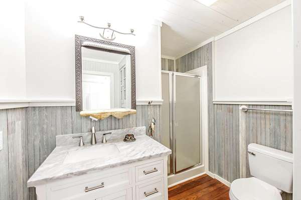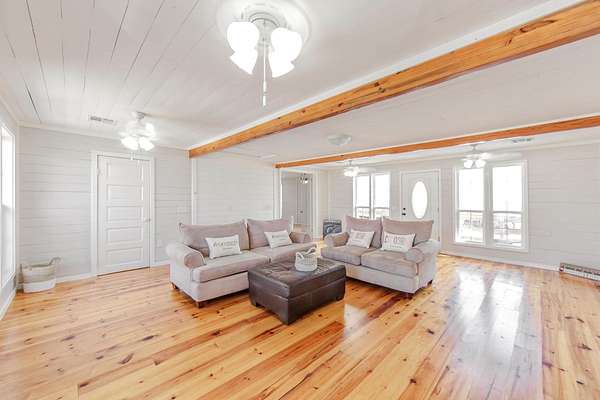 RARE WATERFRONT INVESTMENT OPPORTUNITY - Versatile Camp with Private Dock & Endless Potential!! Imagine owning your own slice of waterfront paradise where relaxation meets smart investment savvy. This exceptional package combines THREE PROPERTIES into one incredible sale, delivering immediate value and future flexibility all on OWNED land. At the heart is a unique camp setup on two adjacent lots, featuring a spacious shared living area with stunning knotted pine floors that exude warm, rustic charm. Step inside to a grand common space perfect for gathering with family and friends, complete with a front balcony offering breathtaking water views and two covered back porches ideal for morning coffee or evening sunsets. Flanking the central living area are two beautifully mirrored, self-contained living quarters --- each boasting its own open kitchen, dining space, living room, bathroom, and bedroom. This thoughtful duplex-style design gives you the perfect opportunity to keep it as one cohesive camp for multi-generational getaways or easily separate it into TWO INDEPENDENT HOMES for added privacy or a rental income. Build another camp on the extra lot, sell one parcel, or enjoy the flexibility --- the choice is yours!! And the crown jewel? A separate WATERFRONT LOT directly across the street, complete with a covered dock and bulkhead ready for your boat, jet skis, or lazy afternoons fishing and watching the water. Whether you are seeking a family retreat, a lucrative vacation rental setup, or a prime waterfront investment with room to grow, this rare offering delivers it all in one seamless package. Don't miss your chance to own this versatile gem!!