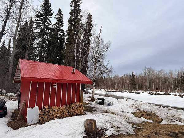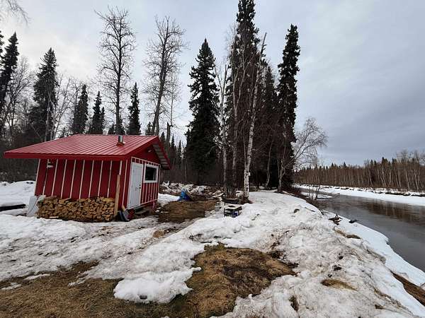 Call/text listing agent - up the chena - can get there by snowmachine in winter, about 5 miles.