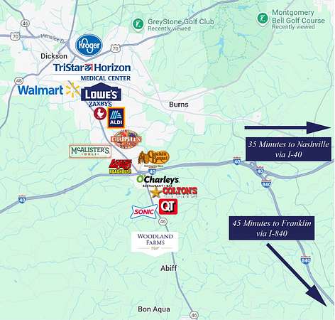 GPS ADDRESS: 1042 S Bear Creek Rd, Dickson, TN 37055 From Nashville: I-40W to Exit 172, Left onto TN-46 S, Right onto Old Highway 46, Right onto S Bear Creek Road, Right on Poplar Way, Left onto Crepe Myrtle Dr, 2nd House on the Right.