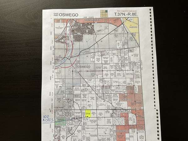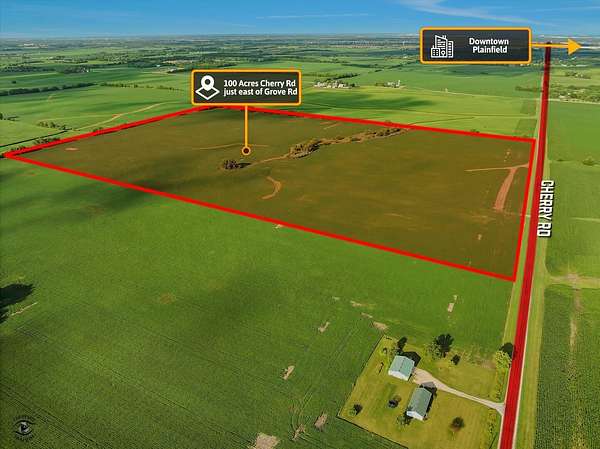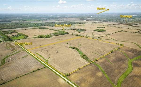 JUST LISTED: Up for sale are 100 acres of farmland just south of Oswego Illinois. Extensive frontage on Cherry Road between Grove Road and Schlapp Road. The land is high and dry with no visible floodplain or wetlands. The land is currently lease to a tenant farmer on a year to year basis. This is a great opportunity to invest in an area of steady growth and good appreciation. Check with the Village of Oswego and Kendall County for future land uses. SEE conceptual plan in "Additional Information " section. A survey is available upon request. See and Compare. Priced right for today's market.
