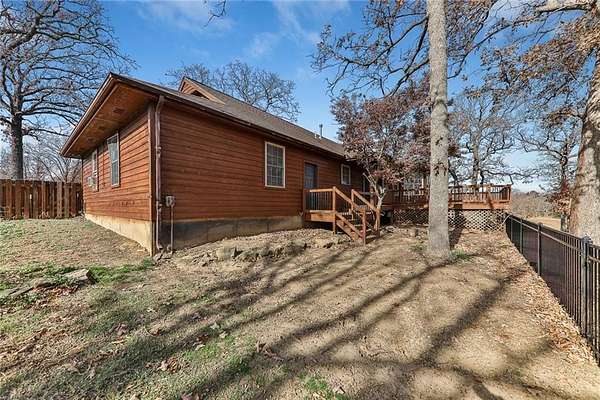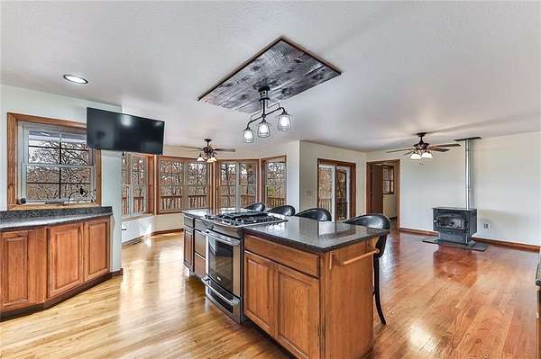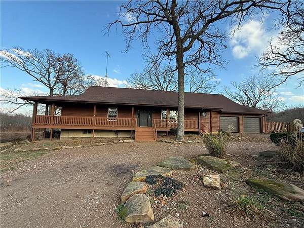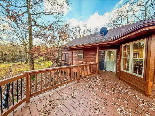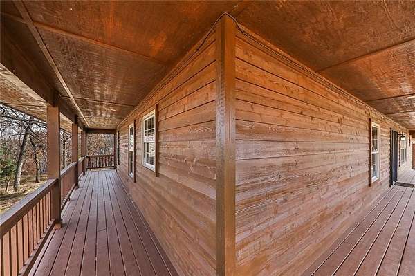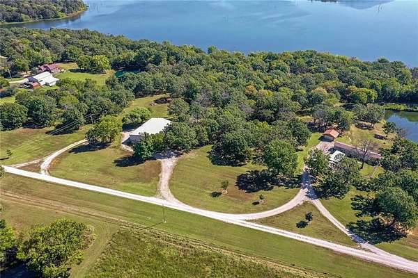 This second-tier Big Hill Lake property, still owned by the same family that built it, offers 26.4 acres with multiple residences, extensive shop space, and direct access to public land. The main home features cedar siding and 1,866 sq ft with 2 bedrooms, 3 bathrooms, a full basement, and an attached 2-car garage. The home includes a geothermal pond loop central heat and air system and a pellet heater for added comfort. The primary bedroom has its own private door leading to the wraparound porch, providing views of the trees and Big Hill Lake just beyond. The big heated and cooled 60*40 shop includes 3 large overhead doors, a bathroom, built-in workbenches, and shelving for tools, equipment, or projects. A fully enclosed horse shed provides space for livestock supplies or storage. The huge 75*50 shop offers full living quarters with central heat and air on the main level, complete with a kitchen and full bathroom, and an additional bedroom and half bath upstairs. This shop features three oversized overhead doors, a new 40' radiant tube heater, and a wood-burning stove, making it ideal for vehicles, equipment, or multi-use workspace. A second residence on the property-a 1,280 sq ft single-wide home with 3 bedrooms and 2 bathrooms-adds flexibility for guests, extended family, or rental income. It includes a detached garage, carport, shed, and fenced yard. Outdoor features include a private pond with an estimated depth of 32 feet and a dock, perfect for fishing or recreation. The property also has its own natural gas well. More than half a mile of the land borders U.S. Army Corps of Engineers public use land surrounding Big Hill Lake, offering direct access to public ground and trails. This Cherryvale acreage provides a rare combination of lake proximity, multiple living spaces, outbuildings, and acreage-ideal for a homestead, retreat, or anyone needing substantial shop and storage space.