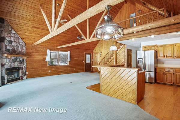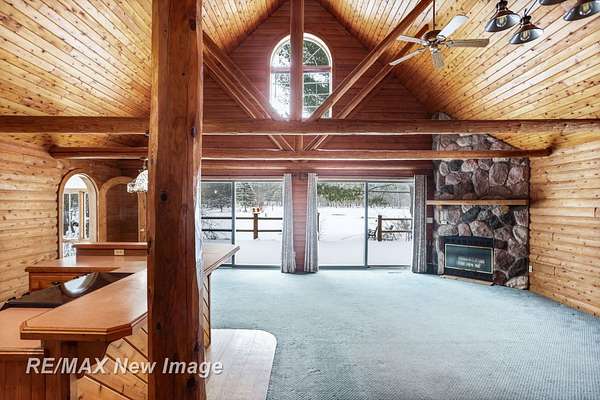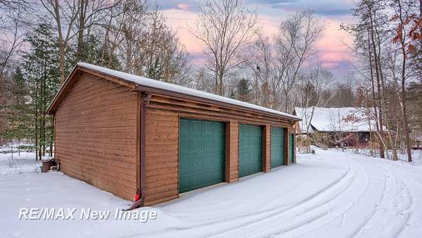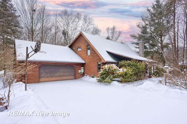 Welcome to your own private retreat situated on 5 acres of scenic land. This property features a 2,300 sq. ft. log home offering 4 bedrooms and 3 full bathrooms, along with a heated garage. The inviting living room includes a wood-burning fireplace for cozy winter evenings, complemented by three additional gas fireplaces throughout the home. Enjoy beautiful views overlooking the aerated, fully stocked pond. In addition to the private setting, the property includes a 22x40 heated barn with a finished loft area, complete with a bedroom and full bathroom--ideal for guests or additional living space. For even more storage or workspace, there is a second heated barn (approximately 24x40) with three overhead doors, ample power, and concrete floors. As you explore the grounds, you will find multiple storage sheds for gardening tools, a dog kennel, a fishing dock, and a gazebo to relax and take in the surrounding wildlife, including ducks, turkeys, and deer. With a few personal touches, this exceptional property could become your perfect forever home.