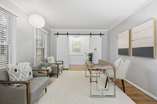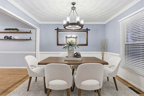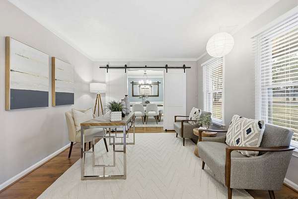 Tucked away at the end of a quiet cul-de-sac, this beautiful maintained brick ranch offers an exceptional blend of privacy, space, and convenience. Situated in a rare neighborhood of 32 homes--each on 3+ acre lots--this 4-bdrm, 3-bath home sits on 3.30 acres and borders over 100 acres of open farmland along the side and rear, creating a peaceful backdrop. Inside, the home features an updated kitchen and bathrooms, a spacious family room, private office, and upgrades throughout. Outdoors, enjoy a beautifully landscaped yard with a large deck overlooking wide-open space and a stone firepit--great for relaxing or entertaining--along with a hot tub offering spa-like comfort. Additional highlights include a 2-car garage, detached workshop with power, storage shed, newer roof and windows, updated HVAC and electrical (2017), and whole-home water filtration. Zoned for Grassfield/Hickory schools and minutes from shopping and dining, this property offers refined country living without compromise.