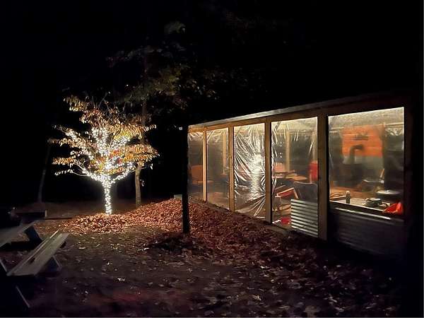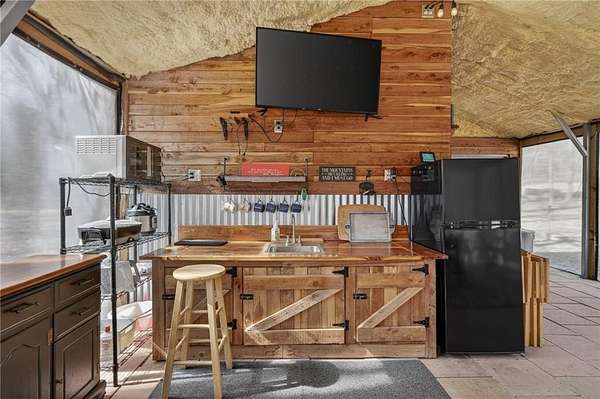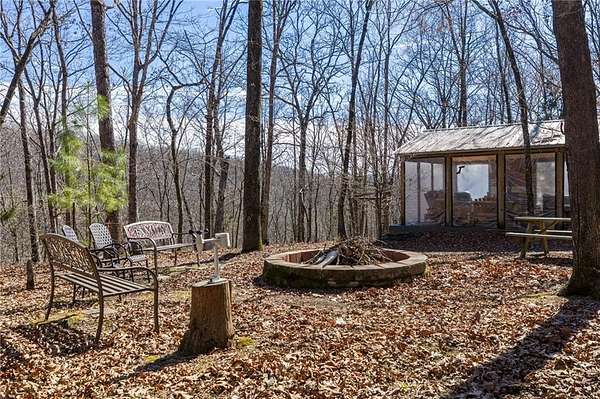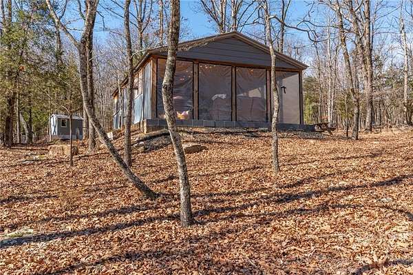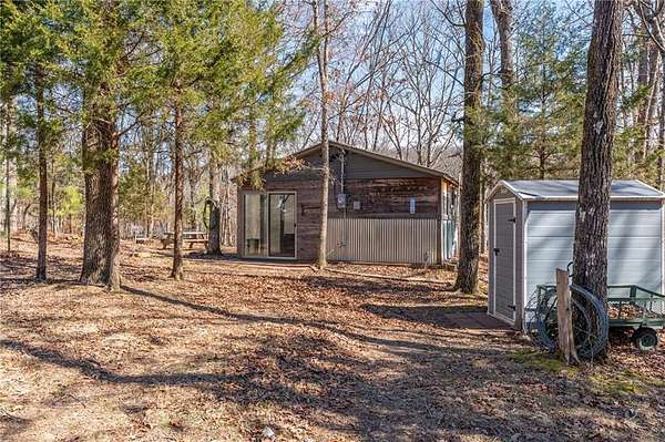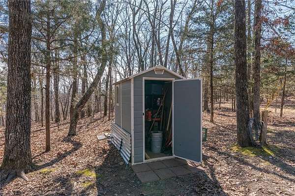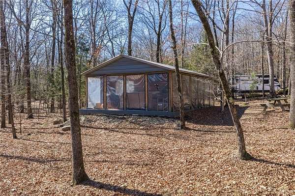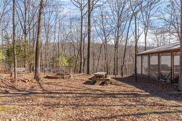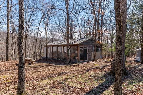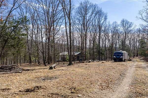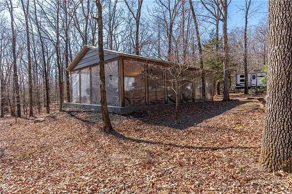 Escape to 16+ beautiful acres tucked away in the heart of Crawford County between Alma and Fayetteville, offering a true slice of country paradise. Serene surroundings, mature trees, a creek, bluffs, and an abundance of wildlife! Deer, turkey, fox, and other small game are frequently seen on the property. Modern utilities include electric, city water, and fiber internet make the 20x30 "glamping" pavilion comfortable for families, hunters, hikers, and riders. The pavilion features a full bathroom with a tankless water heater, a kitchenette with a sink and fridge, and a wood burning stove. In cool weather, an insulated ceiling and clear vinyl panels retain the heat, yet allows you to enjoy the views. In warm weather, take the vinyl panels down to enjoy the breeze coming up the valley from the creek. The RV pad facilitates convenient access to the amenities of the pavilion. Conveniently located near the Buckhorn Trail system, it is ideally situated as a place to stay while enjoying your side-by-side.