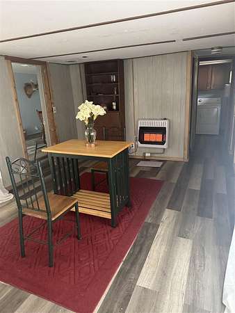Secluded Retreat on 15 Wooded Acres!! - Ideal for Year-Round Living or Hunting Camp. Surrounded with mature trees & abundant wildlife, this property offers a blend of seclusion, nature and functionality. The land remains beautifully wooded throughout, with a cleared area around the home for easy access & use. Just over 1100 SQFT of livable space (Bedroom,Kitchen & Bathroom) with New flooring & New gas Fireplace, 2024. Electric range and Refrigerator will stay, as well as the washer & dryer, new water heater (2025). No restrictions, sets back approx 230 yards from Chestnut Grove Road, main camp site/homestead not visible from the road. New 200 amp electric service installed & inspected 2024, new water lines (2025) and drain lines & gravel driveway, new vent free heater/fireplace installed, all of this within the last one to two years. . Located at the front of the property is an additional septic per prior owner & electric hookup and Public/City water for another possible cabin or camper if desired, or possibly divide the property. Age of the single wide is uncertain.