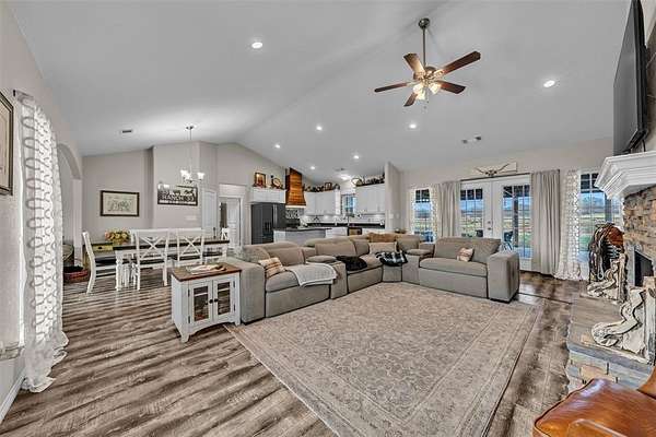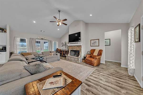 The residence is a sophisticated 2018 custom-built farmhouse spanning 2,274 sq. ft. Designed with an open-concept flow, the 4-bedroom, 2-bathroom interior features high-end finishes and a signature fireplace, providing a refined sanctuary after a day out on the ranch.