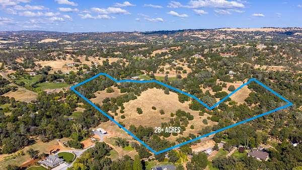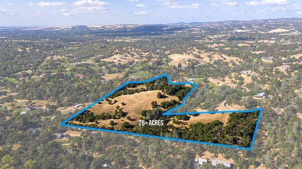 Nestled between Lincoln and Auburn off Highway 193, this once-in-a-lifetime 28.5-acre property lies in the storied Gold Hill area of Newcastle. Minutes to I-80, Galleria, Bass Pro, prime dining & shopping, top schools, and premier medical care. East of local golf courses and the Bickford Ranch development, it offers the perfect blend of privacy, prestige, and proximity. At the end of a hidden valley overlooking a carpet of trees onto the Central Valley, the land unfolds like a natural amphitheater. A softly-rounded, sombrero-shaped hilltop forms the ideal unobstructed building seat - nearly level, not steep - framed by treetops just below in the immediate distance yet open to breathtaking 180-360 ? views of rolling countryside, and spectacular sunsets! Surrounding the hill, gentle lower meadows and flats invite vineyards, pastures, orchards, or equestrian use, with excellent access throughout. The NID canal defines part of the boundary, providing potential irrigation and a serene level walking trail leading toward the Auburn Ravine waterfall. Zoned RA, the land is splittable (buyer to verify), presenting rare flexibility for a luxury country estate, family compound, ranch/farm, vineyard, or thoughtful development of future homesites. The true Gold Hill of the area.