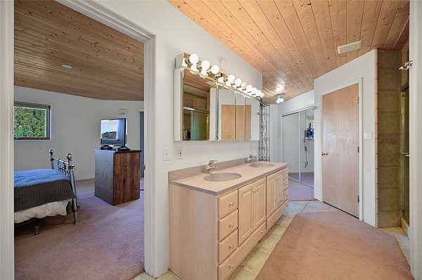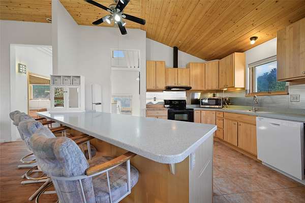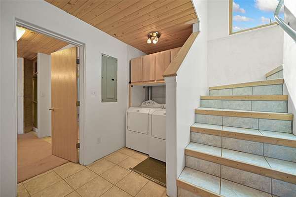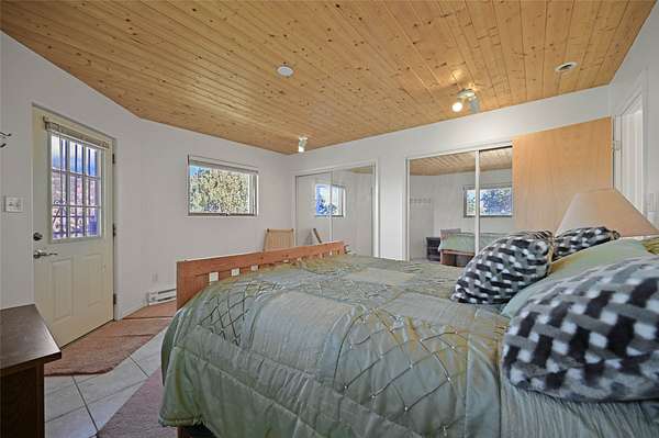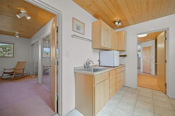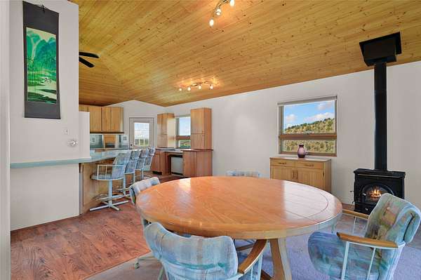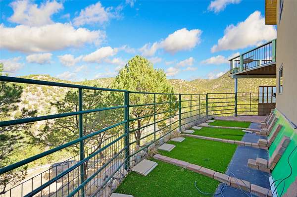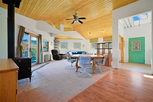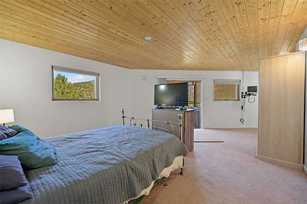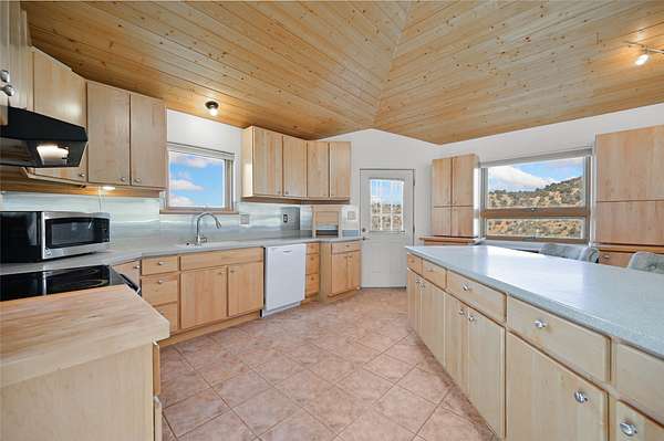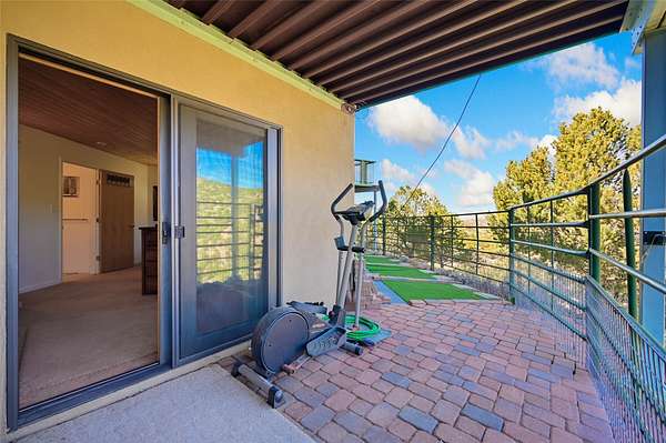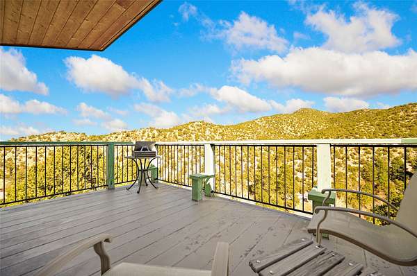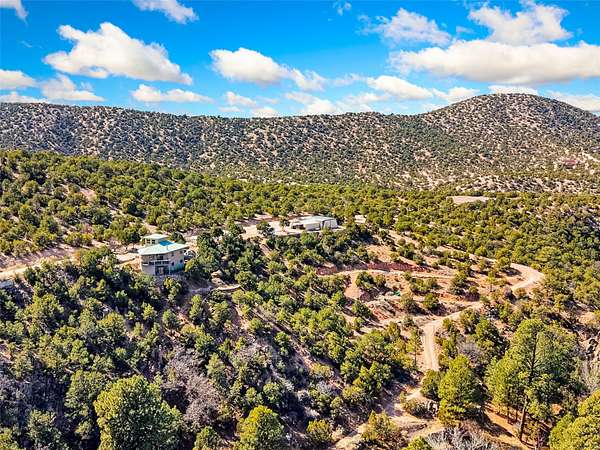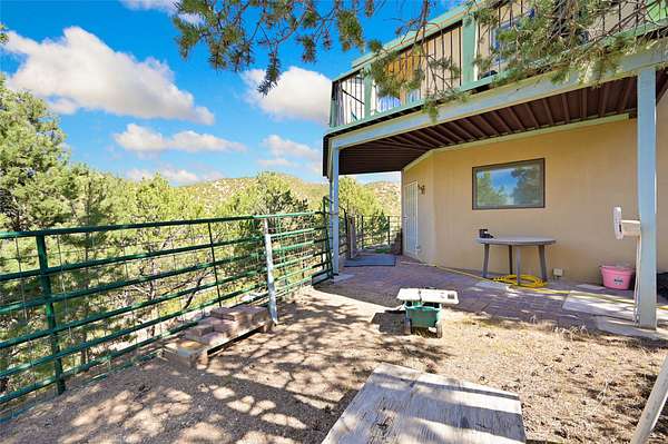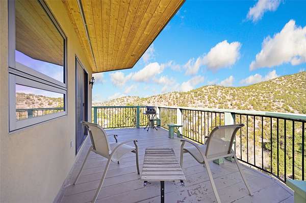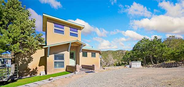 Welcome to your private mountain sanctuary! Tucked away just past Nambe and a scenic 25-minute drive from Santa Fe, this architecturally unique home offers the perfect blend of quietude and character. Whether you're drawn to the creative angles and beams, or the beautiful tongue-and-groove woodwork, this residence feels like a work of art. The thoughtful two-level layout features: Main Level: A spacious, light-filled great room designed for gathering, framed by expansive views of the surrounding landscape. Kitchen with ample counterspace and cabinet storage. A light filled Atrium, great for indoor plants, plus a powder room for convenience. Lower Level: Two comfortable bedroom suites, providing a peaceful and private retreat for family or guests. Each with a full bath. There is also a kitchenette area and laundry. Both bedrooms have direct access to the back patio Deck and Hot tub. Outdoor & Hobby Space: Situated on generous acreage with its own private well, the property includes a dedicated workshop and multiple carports-ideal for makers, collectors, or anyone needing extra room for gear and projects. If you've been looking for a home that breaks the "cookie-cutter" mold while staying close to the cultural heart of Santa Fe, this is the one.
