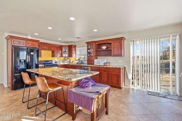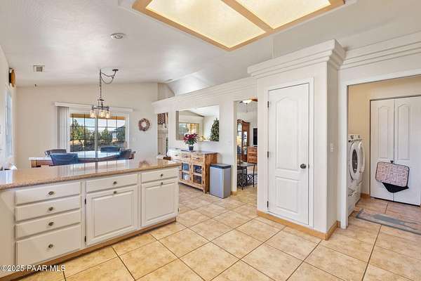 - Ceiling Fan(s), Eat-In Kitchen, Granite Counters, High Ceilings, Kitchen Island, Live On One Level, Master Downstairs, Walk-In Closet(s), Wash/Dry Connection