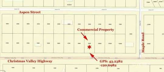 Est $154/moC-1 Commercial Parcel .28 Acres with power and water available in the town center of Christmas Valley. Light brush cover, roadside along Christmas Valley Highway. It is one of the best locations in town, situated nicely between Maple Road and Rainbow Road. It is close to the Dollar Store, so this parcel is really noticeable. This is priced to sell quickly, so if you are interested, do not hesitate. No owner carry.