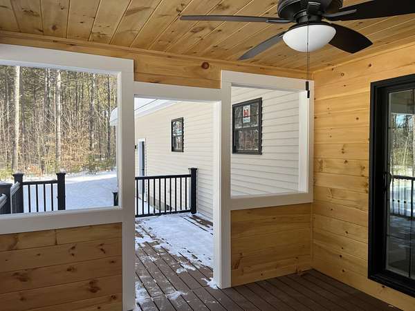 Almost Complete Come look today! New Construction 3BR/2BA Ranch on 6+ Acres with Saco River Frontage - Just 1 Mile from Fryeburg Academy! Be the first to enjoy this stunning, newly built ranch set on over 6 private, wooded acres with frontage on the Saco River. Only 15 minutes to North Conway's shopping, dining, and Cranmore Mountain, as well as Pleasant Mountain Ski Area. This home and beautiful lot offer the perfect blend of natural beauty, recreation, and convenience. Inside, the home features a bright, open floor plan with 9-foot ceilings throughout, creating a spacious and airy feel. The heart of the home is a beautiful modern kitchen with a large center island, perfect for entertaining or casual family meals. The kitchen flows into the dining and living areas, and Slider opens into your screen porch for dining el fresco ideal for gatherings and everyday living. Highlights include:3 Bedrooms and 2 Full Baths, including a private primary suite with walk-in closet and en-suite bath, 2 car attached Garage, First-floor laundry and mudroom access from garage, Central Air Conditioning, Screened-in porch with attached deck for relaxing summer evenings, Gas Fireplace for chilly winter evenings, and a Peaceful, private lot with Saco River frontage in a beautiful new neighborhood. Enjoy this opportunity to own a quality-built, single-level home with privacy--all within close proximity to year-round outdoor recreation and top-rated Fryeburg Academy.