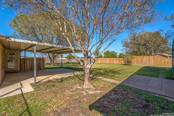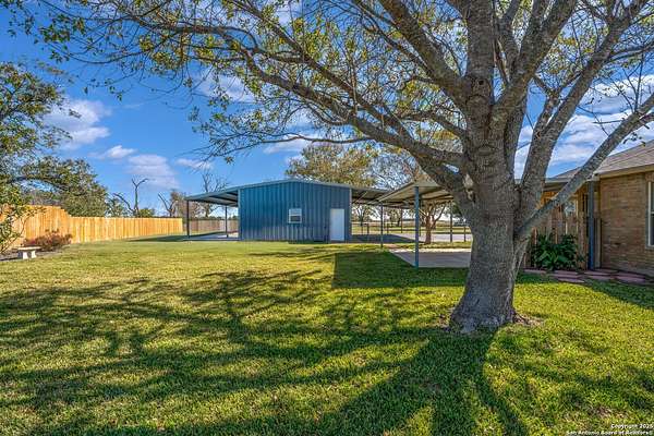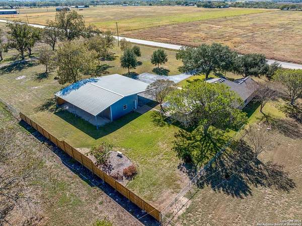 Spacious 3 BR/2BA Home with a large 25 x 50ft. garage/workshop/Multi use building on 1.763 acres,fully fenced! Very Motivated Sellers! Welcome to country living with city convenience! You are going to love this property! This spacious 3BR/2BA home on 1.763 acres (fully fenced with chain-link & privacy fencing) offers 1,974 SF per tax records, featuring two large living areas- one which is perfect for a media room, home office, game room, or potential 4th bedroom. Freshly painted interior with easy-care Travertine tile flooring, and beautiful wood look Luxury Vinyl in the Bedrooms and front Living Area,no carpet! The large kitchen boasts ample counter space, an island, and a stylish tile backsplash. Enjoy outdoor living on the oversized 20x18 covered back patio. The property includes and you will love this also, a massive 25x50 garage/workshop with 3 overhead doors, a 25x50 front carport, and a 12x50 rear covered area. Approximately 1250 Sq.Ft. inside! There is a partial sprinkler system around the house and two sides of the garage! Plus Radiant barrier and blown in insulation! The above ground pool that you see in several of the pictures has been removed and grass will be added very soon! Located in Cibolo city limits, just 2 miles from I-10 and minutes to FM 78. Don't miss this rare find with space, flexibility, and functionality!