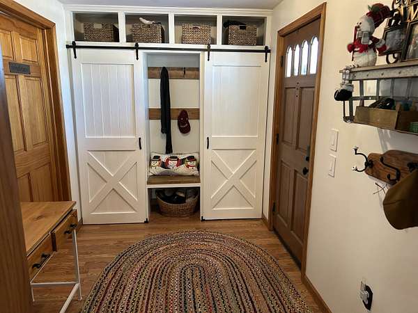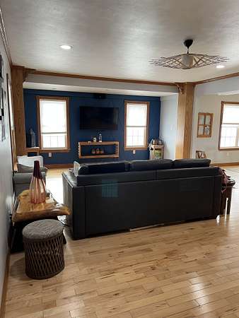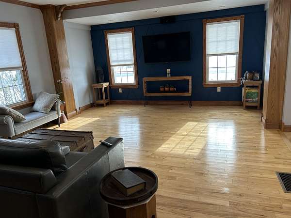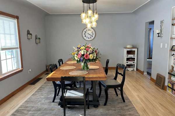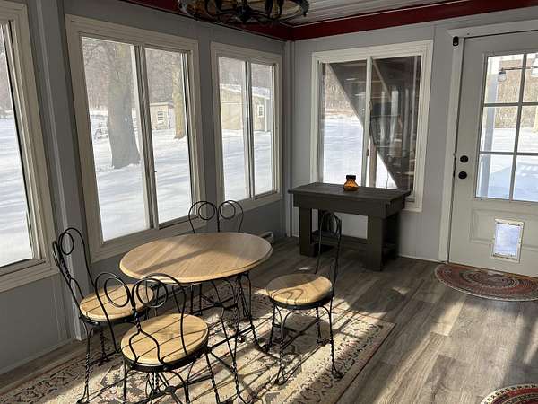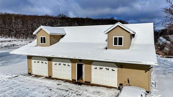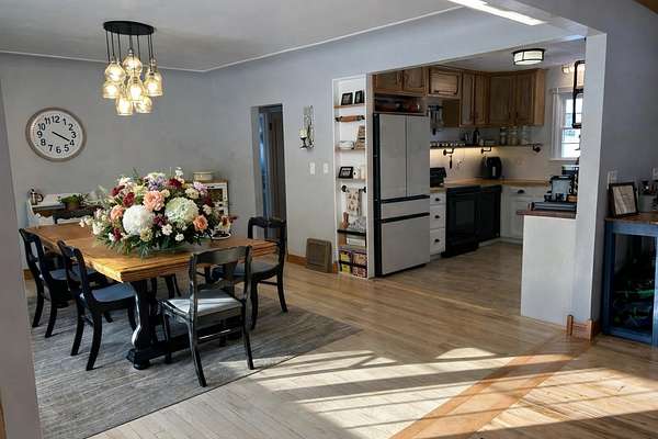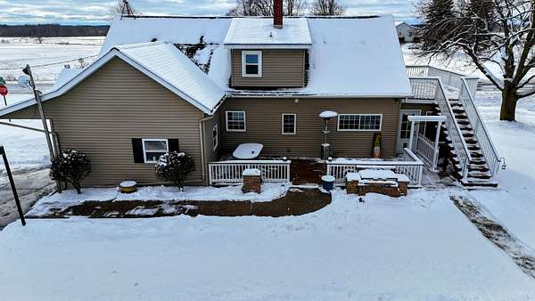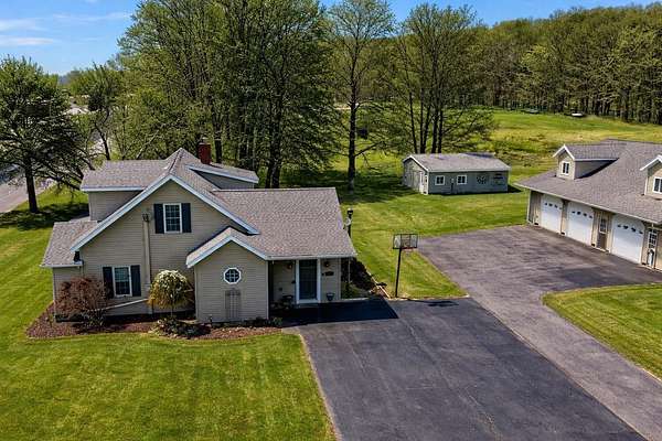 Set on 4.51 acres, this beautifully updated 3,980 sq ft home offers exceptional space, comfort, and versatility--both indoors and out. The open-concept main level is ideal for entertaining, featuring refinished original hardwood floors, a massive dining room with cove ceilings, and seamless flow into the living room and kitchen. The home offers 5 bedrooms, 2 full baths, a dedicated office, pantry, mudroom and convenient main-floor laundry, providing flexibility for today's lifestyles. The finished lower level expands your living space with a second family room, bonus room, additional pantry, workshop, and mechanical area. A geothermal heating and cooling system delivers efficient, year-round comfort. Outdoor living truly shines with a three-season sunroom, multiple decks, built-in grill, drinking fountain, and peaceful views of beautifully landscaped grounds filled with mature shade trees and perennials. The three-car detached garage includes a workshop, loft, and finished bonus room, offering endless possibilities for hobbies, storage, or guest space. A circular driveway provides ample parking. Gardeners and hobbyists will love the large shed with potting area, chicken coop, and fenced raised garden area. The property is completed by a stunning, fully fenced swimming pond, featuring a stone patio, floating dock, aerator system, pump-fed water tower, and a rock-lined stream flowing gracefully into the pond. This exceptional property offers the perfect blend of privacy, functionality, and move-in-ready living--a rare opportunity to enjoy nature, space, and comfort all in one.