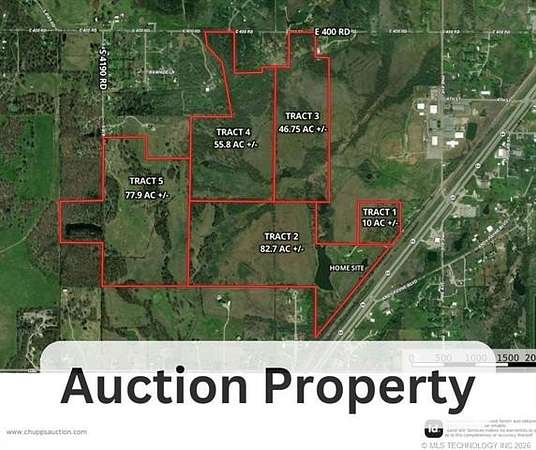 Auction Property! Live auction Thursday Apr 23 10:01 AM. Opening bid $100,000 190.3 acres offered in 4 tracts, presenting excellent opportunities for ranching, recreation, or future homesites. The land has been reclaimed and has been used for cattle grazing and hay production, and is currently maintained as hay meadow. Features include cross fencing, several ponds, including a large quarry pond, and scattered wooded areas that provide a great wildlife habitat. A versatile property well suited for cattle, hay production, hunting, or building, with a convenient location just minutes from Claremore and close to Tulsa with easy access to the Will Rogers Turnpike. More land available: MLS #2609594 - Auction held at: 12492 S 4200 Rd Unit B Claremore, OK 74017
