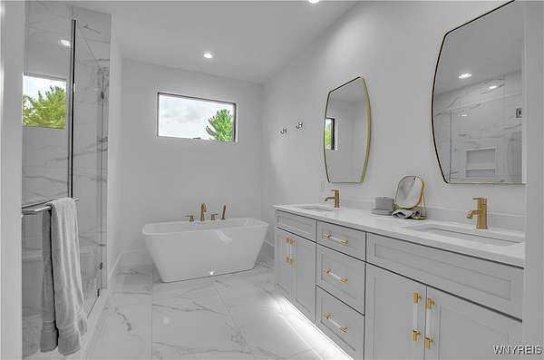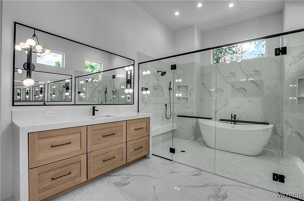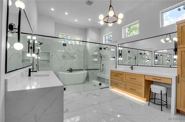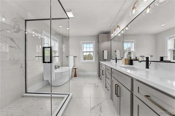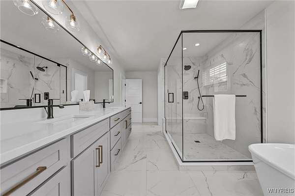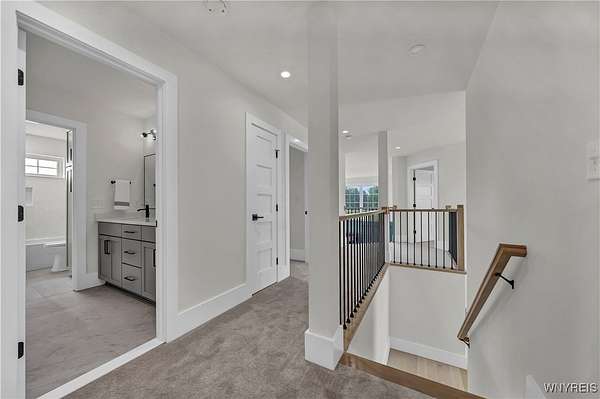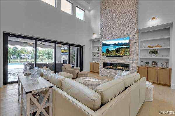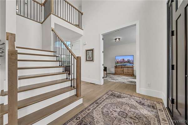 Located on a secluded cul-de-sac within the highly sought-after Clarence School District, this is a rare and highly exclusive opportunity to build a luxury custom residence on 1 of only 5 estate-style homesites designed to showcase exceptional craftsmanship and architectural detail. Presented by Brownstone Homes, one of Western New York's premier custom builders with nearly 40 years of building experience and over 100 custom-built homes in WNY, this proposed residence offers approximately 5,400 square feet of finished living space, including approximately 900 square feet of finished lower-level living area. The featured floor plan includes 4 bedrooms and 4 full bathrooms, with each bedroom offering its own private ensuite, a dramatic two-story great room, expansive entertaining spaces, 10' first-floor ceilings and 9'ceilings on the second level, and a 3 car garage, all within a flexible layout well-suited for modern lifestyles. The design allows for a possible 1st floor, 5th bedroom or private home office, along with a spacious primary suite featuring a spa-inspired bath, generously sized bedrooms, and multiple gathering areas throughout the home. The finished lower level provides additional living and recreational space ideal for entertaining, fitness, or media use. Interior finishes are designed to reflect Brownstone's elevated standard of quality and craftsmanship, featuring custom cabinetry, premium millwork, wide-plank hardwood flooring, quartz surfaces, designer lighting, and thoughtfully curated architectural details throughout. Exterior elevations will showcase a high-end blend of materials and detailing consistent with Brownstone's custom portfolio. This home is to be built, offering the buyer the ability to proceed with the featured floor plan, select from one of Brownstone's already completed custom designs, or collaborate directly with the builder's design team to create a fully customized residence tailored to their vision. Photos are digital renderings and/or examples of previously completed Brownstone Homes and are for illustrative purposes only. A rare opportunity to bring a true luxury vision to life in one of Clarence's most desirable settings.