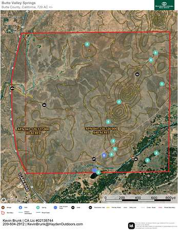 The scenic and versatile surveyed land ranges from 260' to 440' in elevation and has convenient, well-maintained access along the paved county-maintained Clark Road. The drive to and through the property features striking vistas and panoramic views of the surrounding region. The land to the west and north is relatively flat including gently rolling hills, with additional tree cover to the east and south. The property includes a variety of deciduous and some evergreen trees and a mix of native grasses. Numerous year-round springs dot the landscape with two creeks (Dry Creek and Fallager Creek) and a large 40' deep pond providing additional water. Electrical power is close to the property, and a high production well on the land is capable of nearly 800 GPM. Zoning is favorable with AG-160 designations, providing a wide variety of land uses. The property has extensive planning completed including development opportunities. APN 041-120-127-000, 80-acres; 041-450-120-126-000, 640-acres; total of 720-acres. The property is not currently enrolled in the Williamson Act.