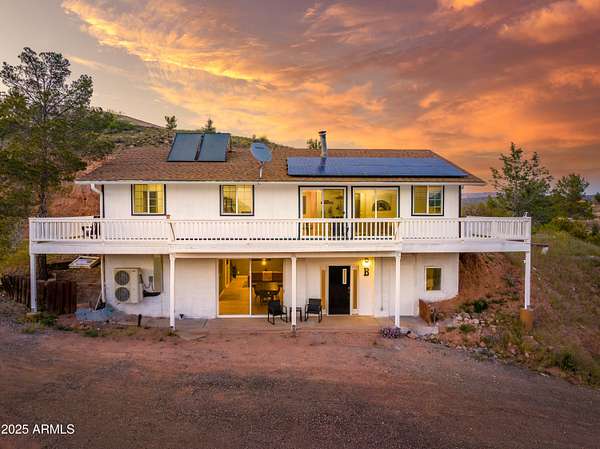Welcome to this stunning, completely renovated home in Clarkdale! This spacious 4 bed, 4 bath home has some of the most incredible views of the Verde Valley. The home features two full kitchens and two separate living spaces, providing ample room for entertaining and relaxing. It's currently configured as a duplex with each level consisting of 2 bed, 2 bath. The extensive renovation was fully permitted and includes all new fixtures, cabinets, and appliances throughout the home, ensuring a modern and luxurious living experience. This property is an excellent investment opportunity as a long-term rental duplex or perfect for short-term rentals. Perhaps you wish to occupy one level and rent out the other to offset your mortgage. Home is being sold fully furnished - this is a turn key STR! The 2.25 acre lot has unobstructed views of Mingus Mtn, Sedona Red Rocks and the entire Verde Valley. There are 2 private wells on the property and a perfect building site to add another home. No HOA - the possibilities are endless.
