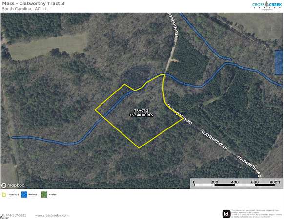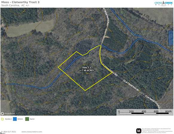 This 7.4-acre property is located at Clatworthy Rd in Honea Path, SC 29654. The property is available for sale for $129,500 with a price per acre of $17,500.