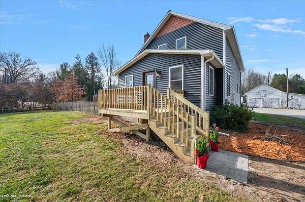 Restored Farmhouse on 11 Acres - Modern Comfort Meets Country Living. Welcome to your beautifully restored farmhouse situated on 11 peaceful acres, offering the perfect blend of charm, privacy, and modern updates. This home has been fully renovated from top to bottom, featuring new windows, roof, siding, plumbing, electrical, doors, trim, and a completely updated kitchen and bathroom--all designed to provide worry-free living for years to come. Step outside and enjoy everything this expansive property has to offer. A 2.5-car garage with epoxy floors provides plenty of space for vehicles, storage, or hobbies. Two large barns with concrete floors offer endless possibilities for workshops, equipment, or recreational use. You'll also find a chicken coop, plus a hunting blind tucked away on the property for outdoor enthusiasts. Property also offers a wood burning system and waterproofed basement with drain tiles.