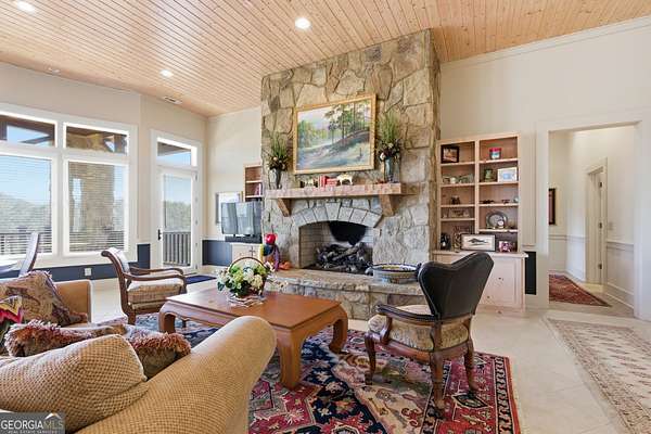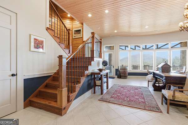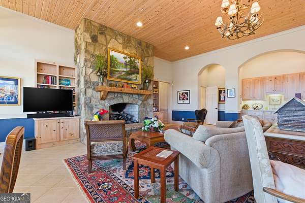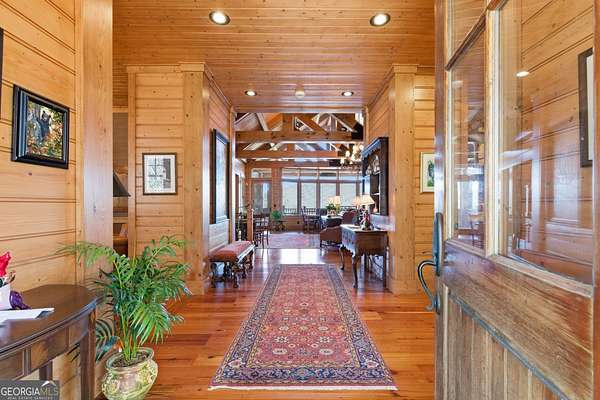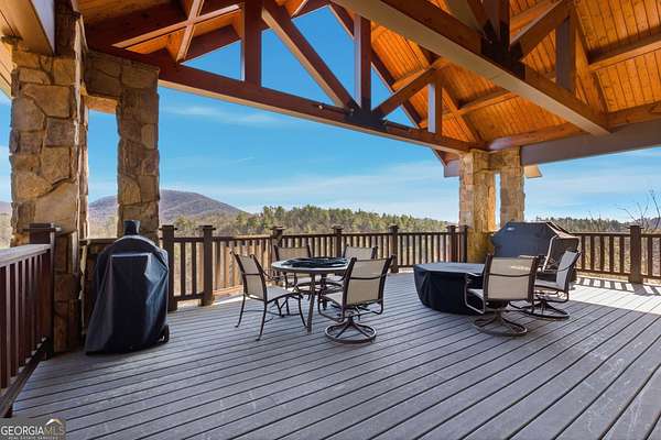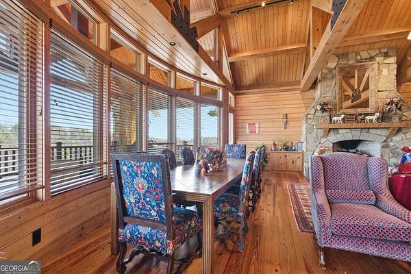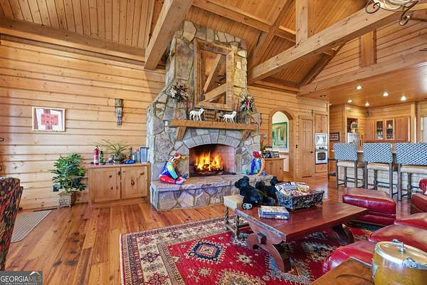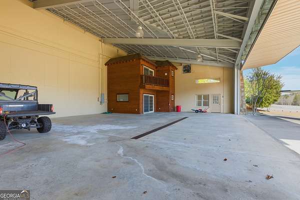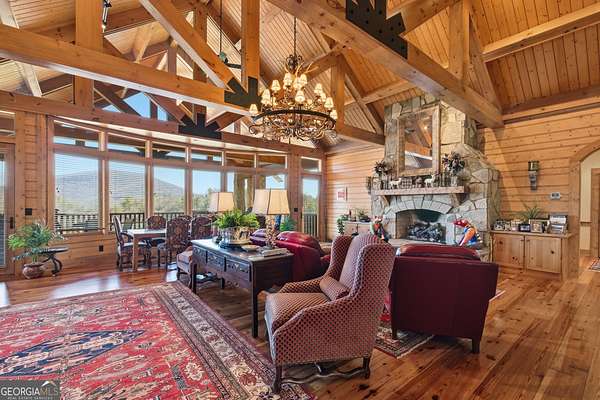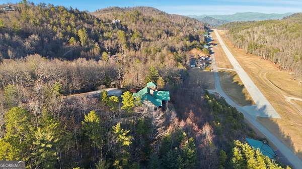 Sky-High Luxury at Heaven's Landing | Premier Fly-In Estate Experience the pinnacle of aviation living in the North Georgia Mountains. Situated in the prestigious Heaven's Landing community, this estate offers a rare combination of direct taxiway access and breathtaking panoramic mountain views. The Ultimate Pilot's Setup - For the aviation enthusiast, the property features a separate 50x60 custom hangar fronting the taxiway. More than just storage, it includes a dedicated pilot's retreat complete with a kitchen and bath-perfect for post-flight relaxation or hosting fellow aviators. Architectural Masterpiece -Accessed via a private cul-de-sac, this 5,700 sq. ft. residence is a study in rustic elegance. The interior is defined by massive beams and exquisite heart pine finishes. A three-stop elevator ensures effortless access across all levels. - Main Level: A soaring vaulted great room anchored by a massive stone fireplace and a rounded window bay. The chef's kitchen with a center island flows into a formal dining room and a dedicated office/flex space. The primary suite features a private balcony and a spa-like bath. - Terrace Level: Designed for entertaining, this floor boasts a large family room with its own fireplace and wet bar, opening to a stone-floored porch. Includes three bedrooms, 2.5 baths, and a second laundry facility. - The Upper Tiers: The third level offers a versatile bedroom with a half bath, while the crowning jewel is the enclosed "crow's nest" with a three-sided deck, offering unrivaled views of the runway and the Blue Ridge Mountains. Property Highlights - Exterior: Standing seam metal roof and expansive covered porches. - Upgrades: New HVAC systems have been ordered for the home. - Outdoor Living: Large elevated porches designed to capture the mountain breeze and runway activity. Location & Lifestyle Located in Rabun County, you are surrounded by over 60% National Forest land, four pristine lakes, and the Wild and Scenic Chattooga River. Enjoy the peace of the mountains with the convenience of Clayton just 4 miles away, famous for its award-winning dining and boutique shopping. The concrete airstrip is 5068 feet long. FAA Identifier is GE99.