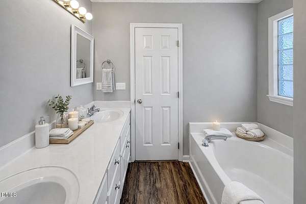 - Bathtub/Shower Combination, Bookcases, Built-In Features, Ceiling Fan(s), Double Vanity, Eat-In Kitchen, Pantry, Room Over Garage, Separate Shower, Soaking Tub, Storage, Tile Counters, Tray Ceiling(s), Walk-In Closet(s)