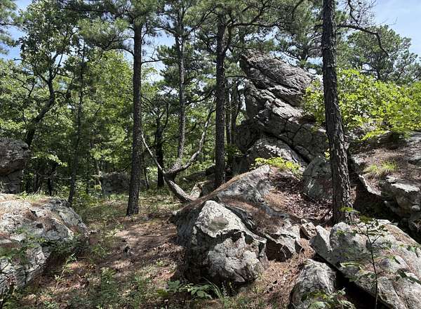 Terrain: Magnificent mountain land, sitting in the Jack fork Mountains. Elevation Ranges from 1,400 ft atop Jack Fork Mountain to 740 feet in Rush Canyon. The many mountain tops create stunning views and panorama's of the surrounding landscape for any outdoor experience.