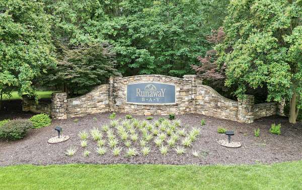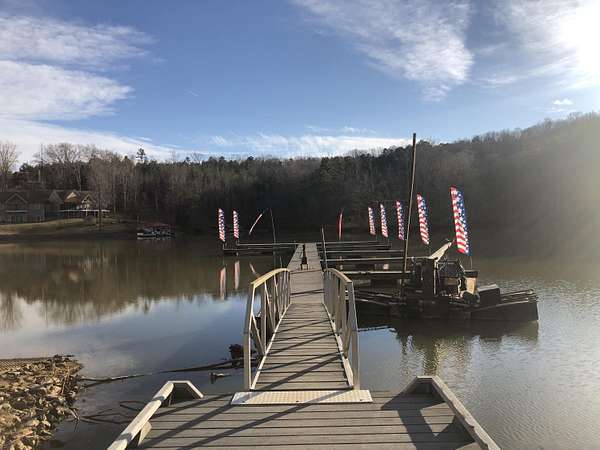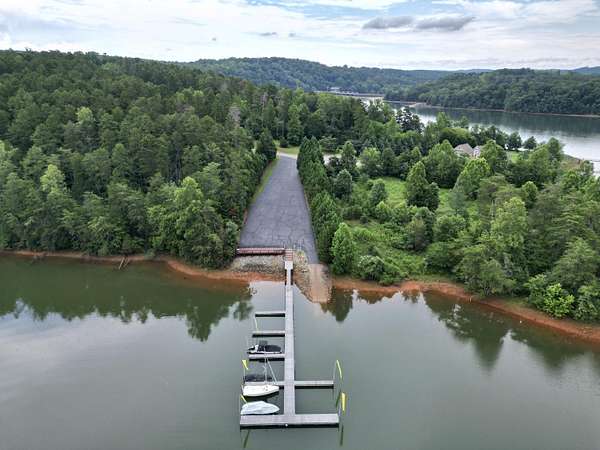 From Hales Ford Bridge: 122 N, R Whitehouse Rd, L SML Pkwy, R Leesville Rd, R Chellis Ford, L Mt Airy, L Runaway Bay, L Thomas Ct, L Hidden Cove, L Bay View, L Clear Pointe Run. On R near comm dock