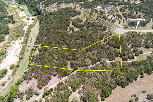 Welcome to an idyllic paradise nestled on 5.2 acres of prime land, offering breathtaking panoramic views of the serene Medina River in Clearwater Canyon Ranch. This exceptional property presents a rare opportunity to build your dream home in a setting that seamlessly blends natural beauty with modern convenience. As you step onto this expansive lot, you'll be greeted by gently rolling terrain adorned with majestic oak trees and native flora, creating a tranquil and picturesque environment. Imagine waking up to the soothing sounds of the river and enjoying unobstructed views that stretch as far as the eye can see. Whether you're drawn to outdoor recreation along the riverbanks or seeking a peaceful retreat surrounded by nature, this property offers endless possibilities for enjoyment, relaxation, and adventure. Nearby attractions include hiking trails, fishing spots, and charming local shops in Bandera, TX, ensuring that each day brings new opportunities to explore and experience the best of country living. Don't miss this rare chance to own a piece of paradise with unparalleled vistas and unlimited potential. Embrace the tranquility, embrace the beauty, and make this stunning property your own.
