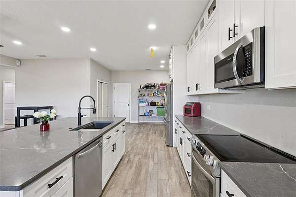 MORE PHOTOS TO COME!! MOTIVATED SELLER-ALL OFFERS WELCOME! Looking for country living within driving distance of urban lifestyle. This home is perfect. The 2023 built, almost 5 acre fenced property, in the town of Clermont, Florida has it all. A beautiful 3000 square foot multi generational home can be a great option for someone looking to have a private apartment for a family member or it can easily be made into duplex. The main house has 2 bedrooms and 2 bathrooms with a large kitchen that boast an amazing island for chefs of all types. The kitchen opens to a grand great room for relaxing, entertaining or holidays with family members and guests. You can access the private screen porch from the kitchen and family room and look onto the beautiful landscape of the back of the property. The master suite is an owners dream with views of the property.