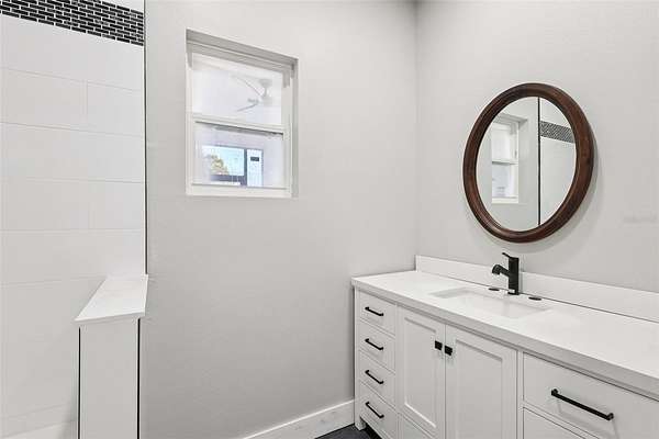 The mother in law suite has 1 bedroom and 1 bathroom with a full kitchen and large living room. This unit of the home also has a private screened porch in the back and a private entrance and screened porch in the front of the home.