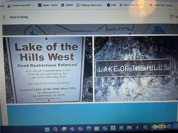 Lake of the Hills West subdivision presents an excellent opportunity for those seeking a harmonious blend of natural beauty. Nestled close to Highway 281 and merely a short drive from the vibrant city of San Antonio, this .31 acre lot offers the perfect balance between convenience and tranquility. The minimal restrictions in the subdivision make it even more appealing, providing flexibility for future homeowners to build and customize their properties according to their unique visions. The voluntary HOA and no city taxes further enhance the affordability and attractiveness of this location. The subdivision boasts several amenities that cater to both recreation and relaxation. A small wet-weather lake or pond and a playground with a BBQ area provide ideal spots for family gatherings and outdoor activities. The picturesque Hill Country views, ranging from 25' to 35' as captured in drone photos, add to the scenic allure of the property. With electric and water service available in the area, future residents can look forward to modern conveniences while still enjoying the rustic charm of this serene enclave. Centrally located between prominent Texas cities such as San Antonio, New Braunfels, San Marcos, Austin, Fredericksburg, and Boerne, Lake of the Hills West is perfect for day trips to various cultural, historical, and recreational attractions. This strategic location makes the lot an excellent candidate for a forever home or a potential income-generating property, catering to visitors seeking a peaceful retreat with easy access to Hwy 281, beautiful Canyon Lake, The guadalupe River, Schlitterbahn, and Six Flags.