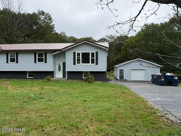 Step right into this fully remodeled home! This beautifully updated property features 4 bedrooms and 3 full bathrooms, plus a finished lower level with space for 2 additional bedrooms--perfect for guests, a home office, or added living space. The modern kitchen is a true highlight, featuring quartz countertops, custom cabinetry, stainless steel appliances, and a bright eat-in kitchen/dining area. Patio doors open directly onto a large rear deck--ideal for entertaining or relaxing with a scenic view. Bathrooms offer stylish tiled showers and double sinks, providing both luxury and functionality. Additional features include: Custom closets throughout Wood stairs for a warm, elegant touch Ceiling fans for year-round comfort Large rooms and a big front window bringing in tons of natural light Custom railings adding a modern touch New flooring throughout A durable metal roof Detached two-car garage Every detail in this home has been thoughtfully designed for comfort, style, and functionality. Move-in ready and waiting for you! Whether entertaining on the back deck or relaxing indoors, this home blends style, function, and comfort in every detail.ADJOINING 1.5 ACRE LOT CAN BE BOUGHT FOR 420K PACKAGE DEAL